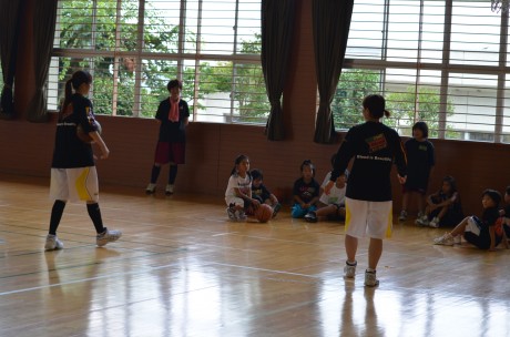 ここでは低学年、高学年に分かれて基礎練習、ゲームをグループごとに行いました。
