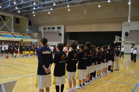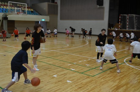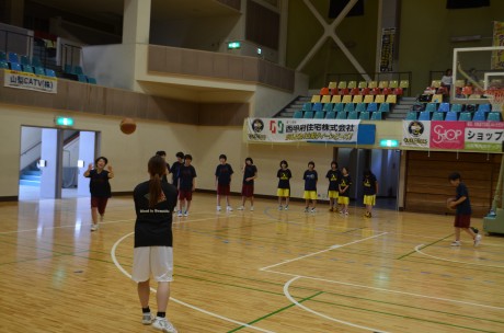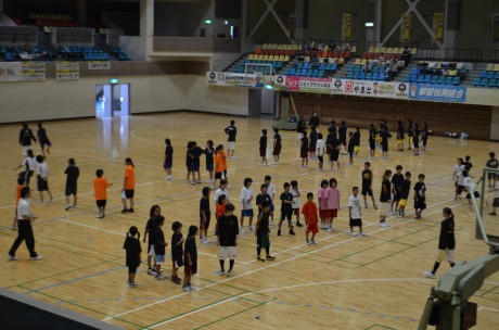 この日も大変暑かったのですが、午前中に1時間、甲府市内のミニバス・中学生総勢100名の皆さんは基礎練習やボールレクを一生懸命頑張っていました。