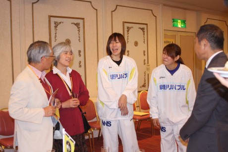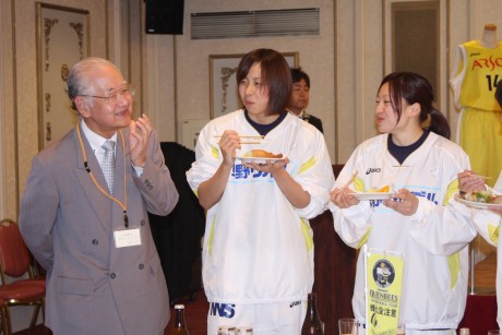 チームを応援してくださる、スポンサーの皆さんをはじめ後援会の方をご招待し、ヘッドコーチ、選手からの抱負から始まり、選手と出席者の皆さんとの歓談やスポンサーであるアルソア様の化粧品やJA梨北様のお米などを景品に抽選会も行いました。梨北米がJA梨北代表出席者に当たってしまう等のハプニングがあったりととても楽しい時間を過ごしました。
