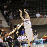3Q は、横井、外村のジャンプシュート、連係プレーによる津田のシュートなどで差を広げようとするものの、相手は、3P攻勢などで反撃。残り1分30秒で43:43の同点とされるが 近内郁美が2本の3Pを決め、49:46で、最終Qへ。