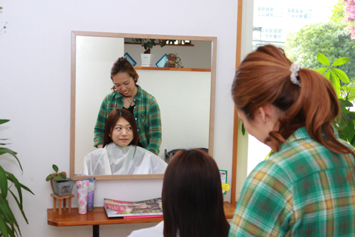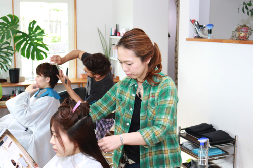 山梨クィーンビーズの協賛企業として、選手のヘヤーカットを無料で行っていただいている山梨市の美容室クオリア様へジャン(横井 美沙)、ミイ(藤井 美紀)の2名が土曜日夕方お邪魔するという情報をキャッチし