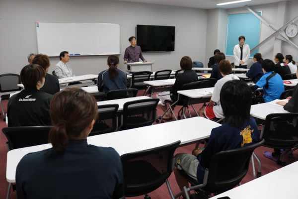 冒頭、水上監督から「Wリーグに挑戦するという意識を各自、改めて認識してもらいたい、最初の目標はサマーキャンプなので、そこに万全のコンディションで臨めるように練習に取り組んでほしい。」と当面の練習方針についての説明があました。