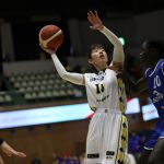 流れは4ピリも変わらず、残り7分43秒で点差が10点差に開くと伊與田ヘッドコーチは「早い段階で5点差に詰め寄れば、そこからは何が起きるかわからない」と早くもこの試合最後のタイムアウトを要求し、ディフェンスをマンツーマンに切り替え、同時に若原を投入。