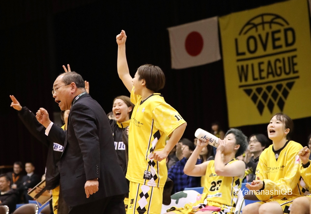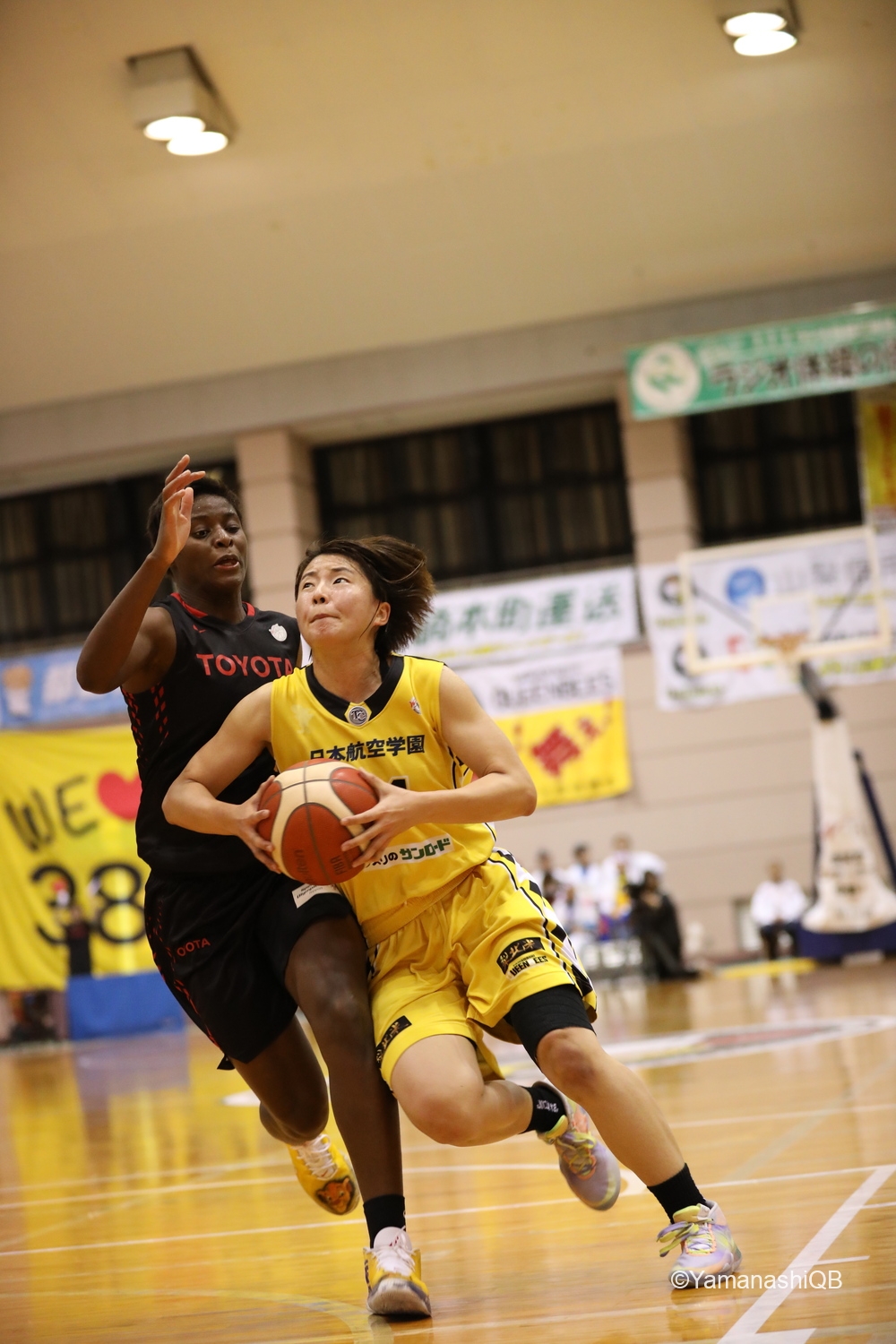 ハーフタイムショーの甲斐市みゆき連による阿波踊りを挟んで始まった後半戦、好調な水野・渡邉を筆頭に運動量で勝るクィーンビーズが身体の大きなトヨタ自動車のディフェンスを翻弄しながら何とか追いすがるが、最終4ピリでは疲れからかシュートの精度が落ち、最後は17点差の92対75でこの連戦黒星スタートとなった。