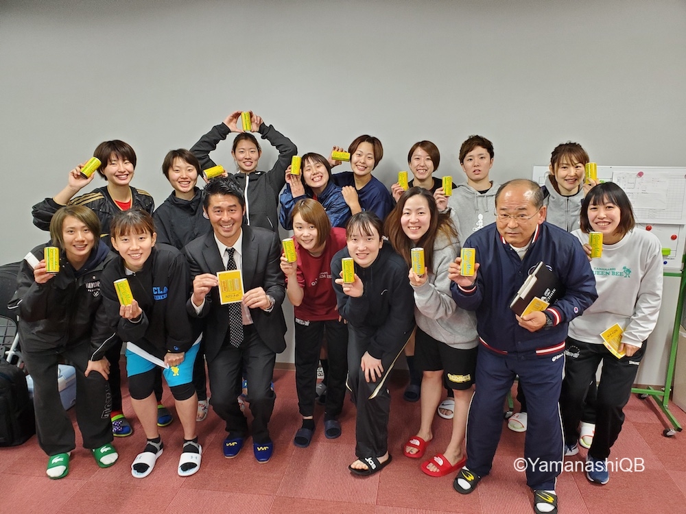 仕事とバスケを両立するクィーンビーズの面々。平日は仕事のあと5時から練習。その後、家に帰り床に入るのは日をまたぐこともしばしば。睡眠は体調維持の重要な要素であり、睡眠時間をしっかり確保することも必須。そんな選手たちに、朝の貴重な時間を有効に使う手段として、また朝食が苦手の選手の朝ごはんがわりに今回大塚製薬株式会社様が有効な接種方法のレクチャーと商品提供を行ってくれたのが「カロリーメイトドリンク」