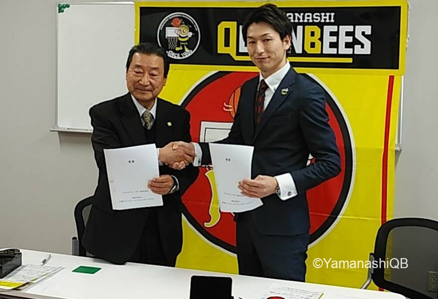 本日(2月6日)クラブ事務所において、ヴィジョナリーパワー株式会社代表取締役 戸田 達昭様と山梨クィーンビーズ代表理事芦澤薫が新電気プラン「QB Power」の覚書の締結を行いました。
