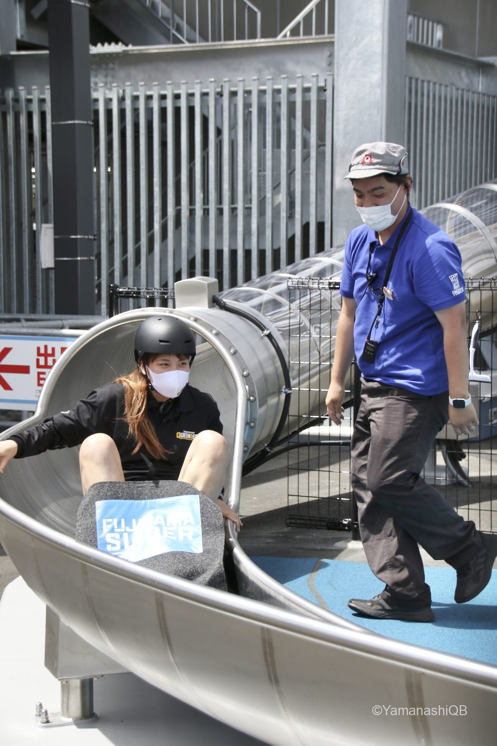 本日(7月20日)、クラブを支援していただいている富士急行株式会社様より富士急ハイランドで22日にオープンする「FUJIYAMAスライダー」の試乗会に招待していただき、クィーンビーズの選手・スタッフ15名が高低差55mのFUJIYAMAスライダーを体験しました。