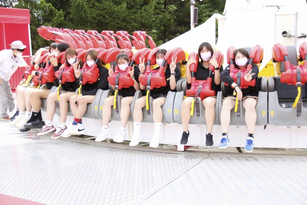 先頭はキャプテン。何時も冷静沈着な岡萌乃ですが、、、実は落ちる系の乗り物は苦手