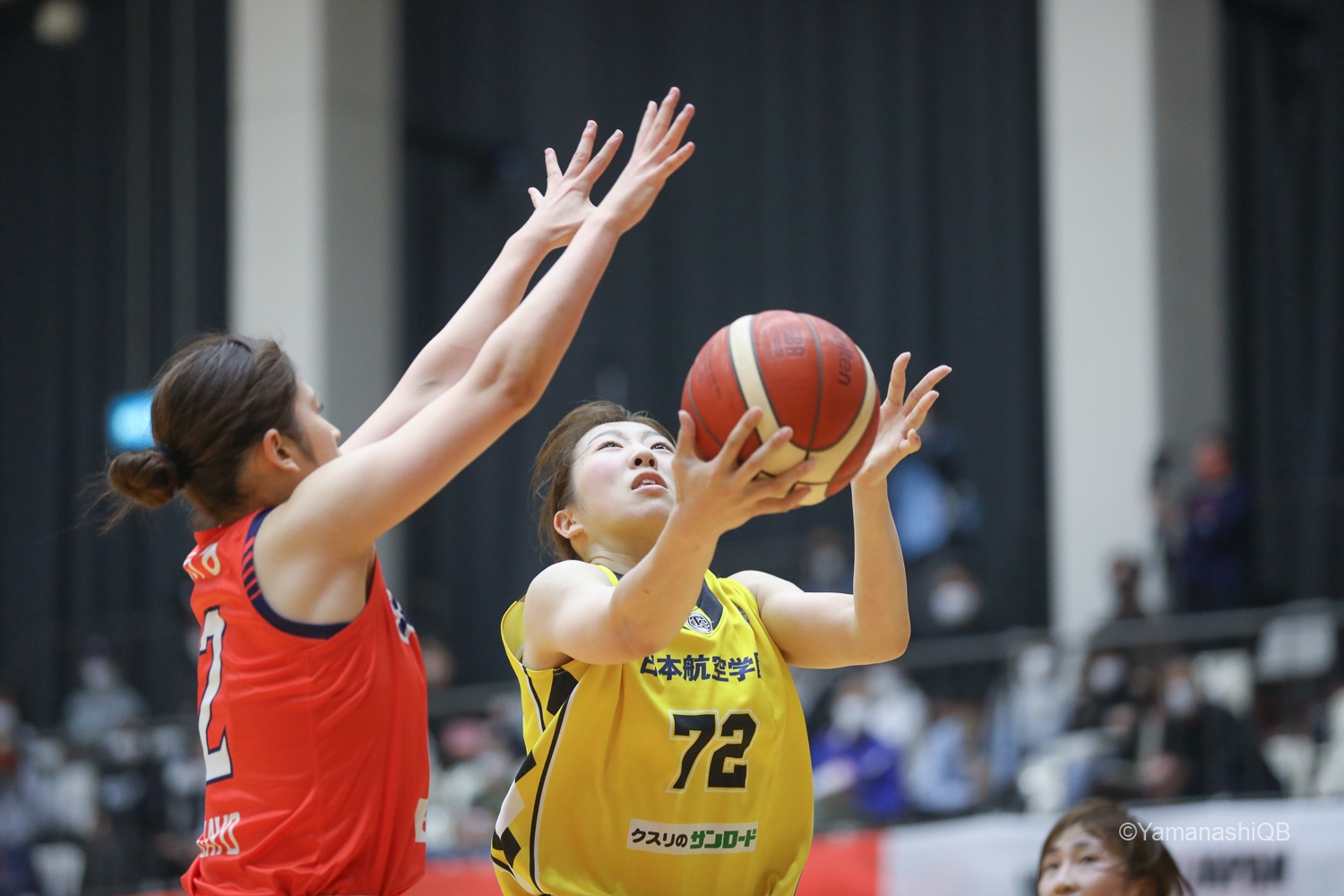 残り3分41秒で同点に追いつき逆転、一時は4点をリードしたが、その後追いつかれ5分間のオーバータイムに、オーバータイムではすでに5ファールのアランマーレに対して、新人の出原菜月が早々に2本のドライブをねじ込む。 その後、得点差は開き82-74で激闘の幕は下りた。