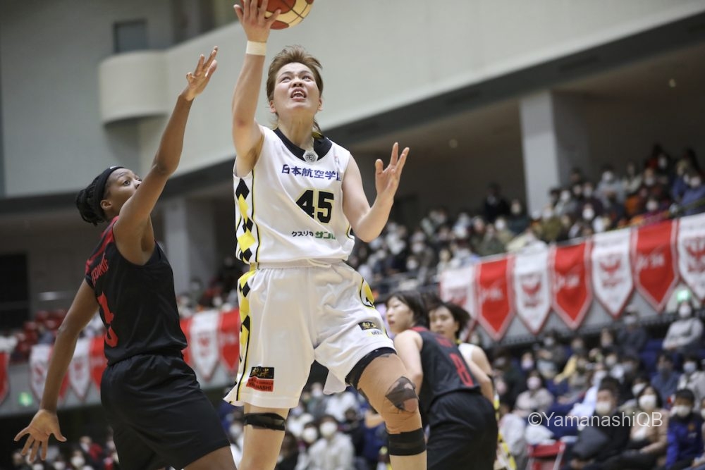 後半、トヨタ自動車のディフェンスのスペースを見つけては片山・土田がドライブで切れ込むが、それ以外ではインサイドの基点が作れず、ボールが外で回る「悪いときの攻撃の形」から抜け出せないまま、点差を詰めることは出来ず62-94でトヨタ自動車との連戦は黒星スタートとなった。試合後、プレスルームで「ディナイがキツく、ボールの出してと受けてのタイミングが終始ずれていた」と口を揃えた岡と片山。