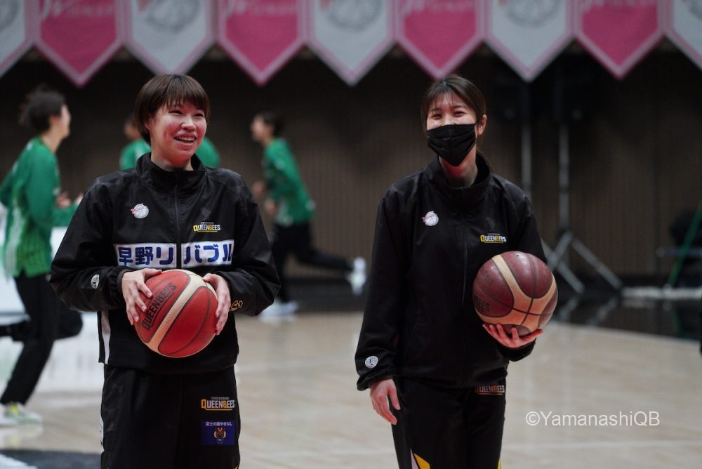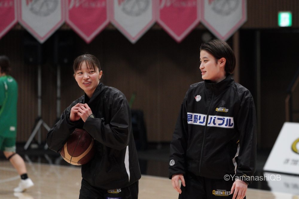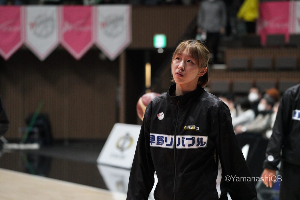 無難な立ち上がりを見せ、アーリエントリー4名も含めてのタイムシェアを行いながら試合を進めるクィーンビーズだが、前半だけで日立ハイテクよりも7つ多い11のターンオーバーを犯し、なかなか波に乗り切れない。