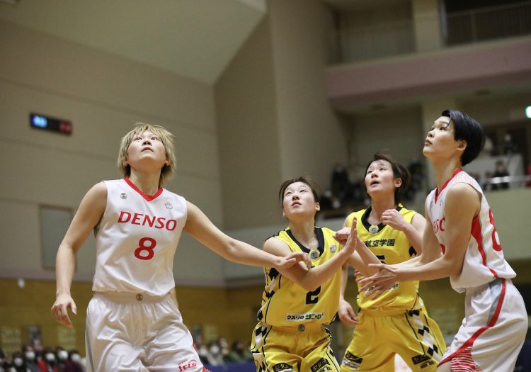 第2ピリオドに入るとクィーンビーズは3-2のゾーンで対抗。デンソーの加点の速度は鈍るが、デンソーの強度が変わらないディフェンスを攻めあぐねるクィーンビーズの得点も伸びないまま前半を終了。17-40と1ピリの得点差+1、23点差で後半戦へ。