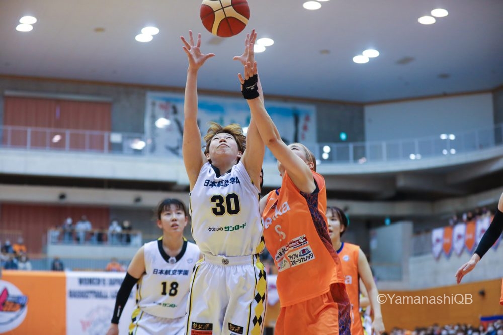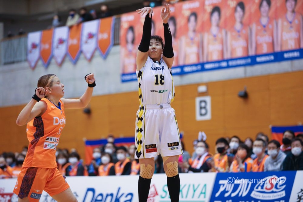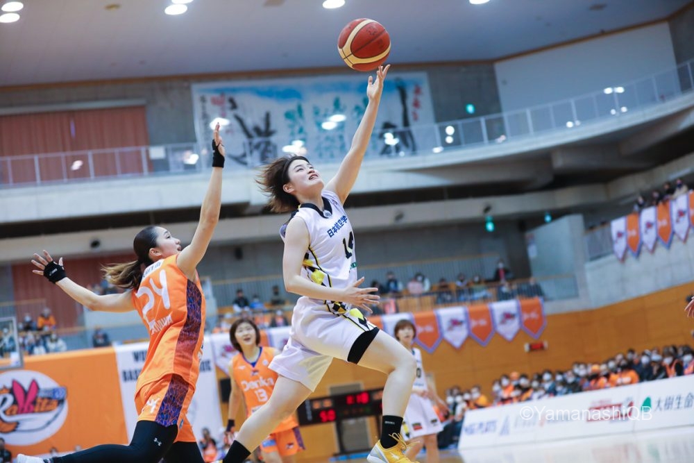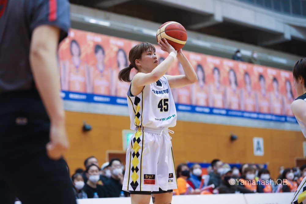 3ピリのスタート、ボールが手につかずもたつく場面も見えたが、昨日に続き今日もチーム最多21得点の中山彩奈が連続してスリー3本を含む11点を挙げ、51-39とリードを広げる。中山はこの場面を振り返り「周りのみんながディフェンスを頑張ってくれて、ブレイクからシュートを打てるシチュエーションを作ってくれた。チームメイトのディフェンスに感謝したいし、皆んなで頑張った得点だった」と話す。
