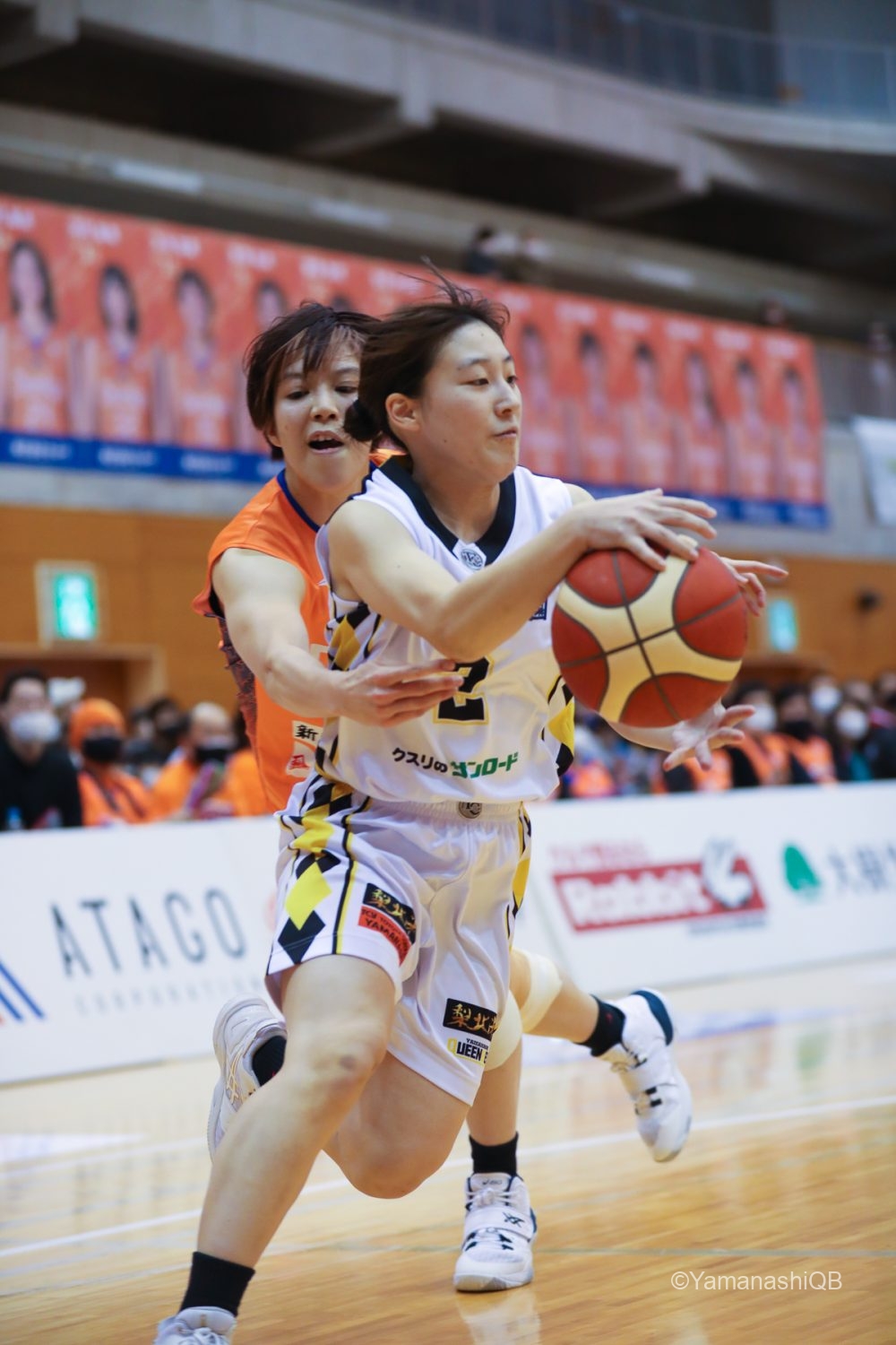 「良い顔をしてバスケを楽しむ」を全員で表現するクィーンビーズは、このピンチにも気持ちを切らさず粘り強く戦い58-55で3ピリを終了し、残り10分に今季5勝目を賭ける。