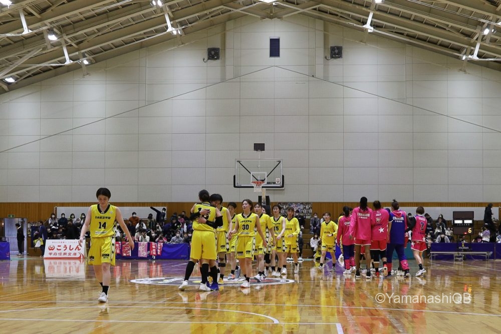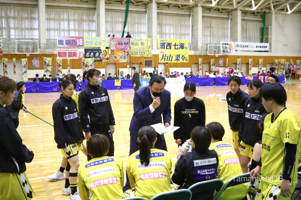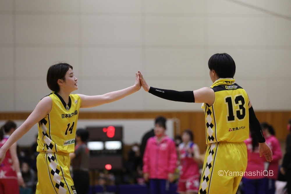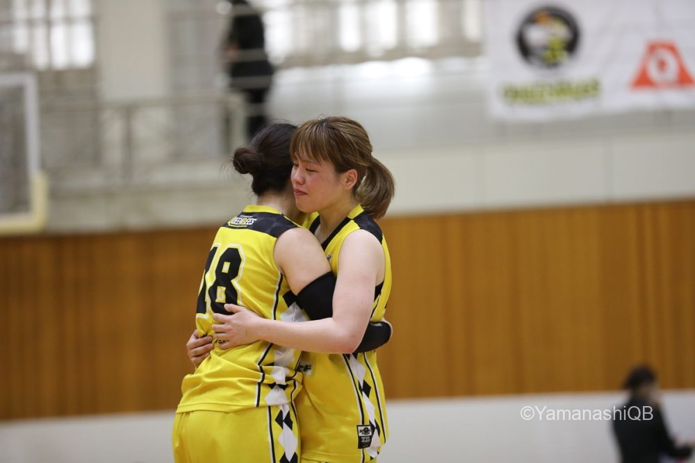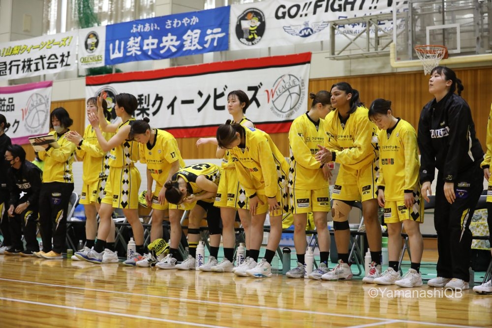 プレスでオフェンスのキッカケを掴んだ時は得点に繋がる確率が上がるが、セットオフェンスではシャンソンのディフェンスに苦戦。決定力で勝るシャンソンの勢いを止めることは出来ず、刻々と時間が過ぎる。 残り48秒、65-94の場面で金子寛治ヘッドコーチは「最後は今シーズンのチームを牽引した5人で」とコートに立つ岡萌乃・渡邉愛加・土田帆乃香・濱西七海の元に若原愛美を送り出す。濱西がスリーを決め68点、その後シャンソンが加点し68-96で試合は終了、昨年10月から始まったクィーンビズ7シーズン目の戦いは幕を閉じた。