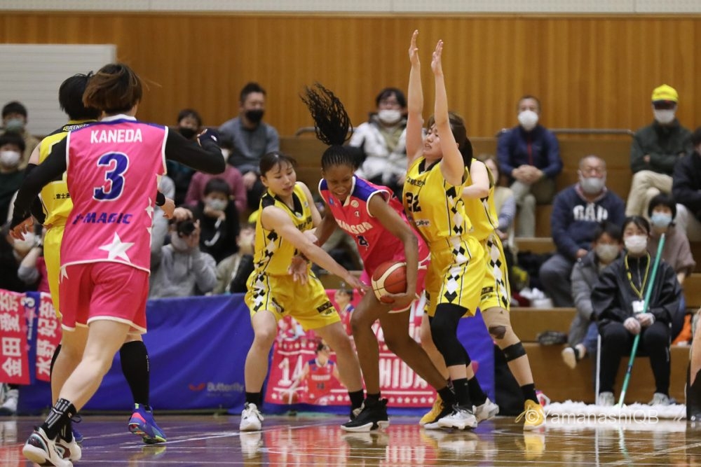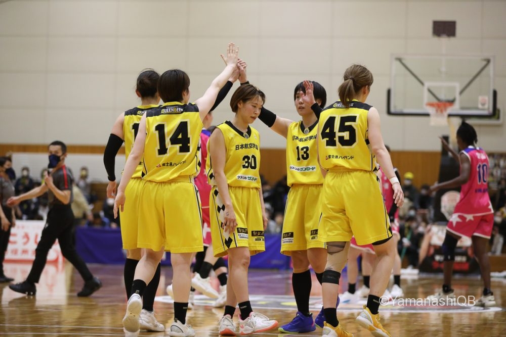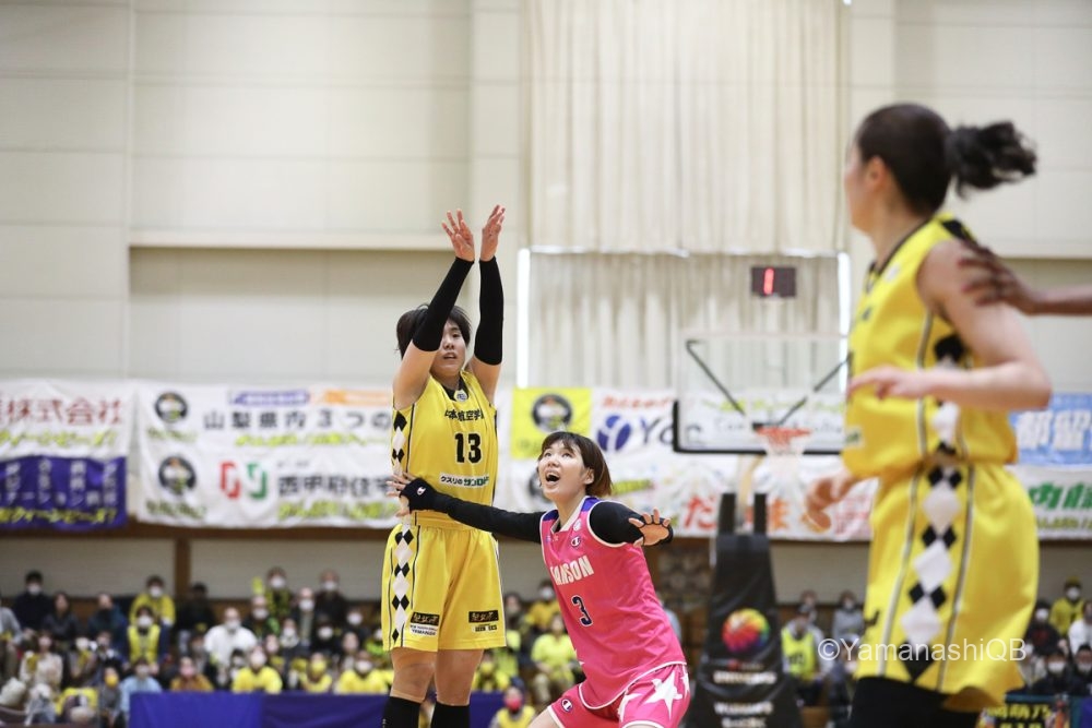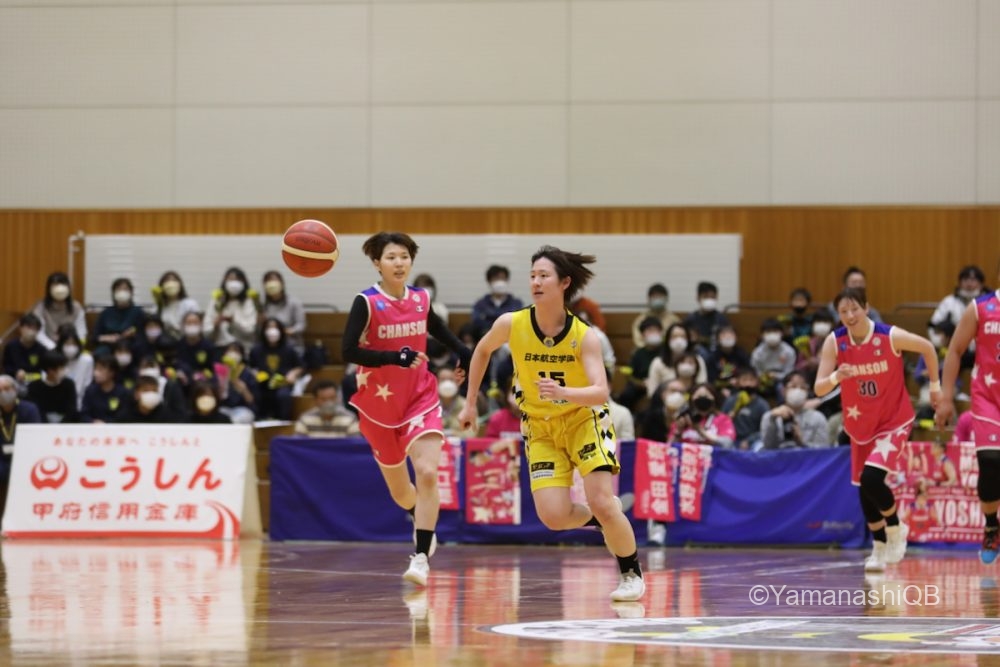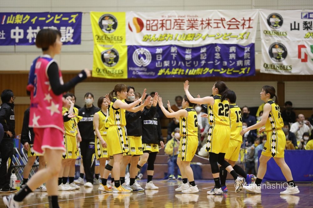 プレスでオフェンスのキッカケを掴んだ時は得点に繋がる確率が上がるが、セットオフェンスではシャンソンのディフェンスに苦戦。決定力で勝るシャンソンの勢いを止めることは出来ず、刻々と時間が過ぎる。 残り48秒、65-94の場面で金子寛治ヘッドコーチは「最後は今シーズンのチームを牽引した5人で」とコートに立つ岡萌乃・渡邉愛加・土田帆乃香・濱西七海の元に若原愛美を送り出す。濱西がスリーを決め68点、その後シャンソンが加点し68-96で試合は終了、昨年10月から始まったクィーンビズ7シーズン目の戦いは幕を閉じた。