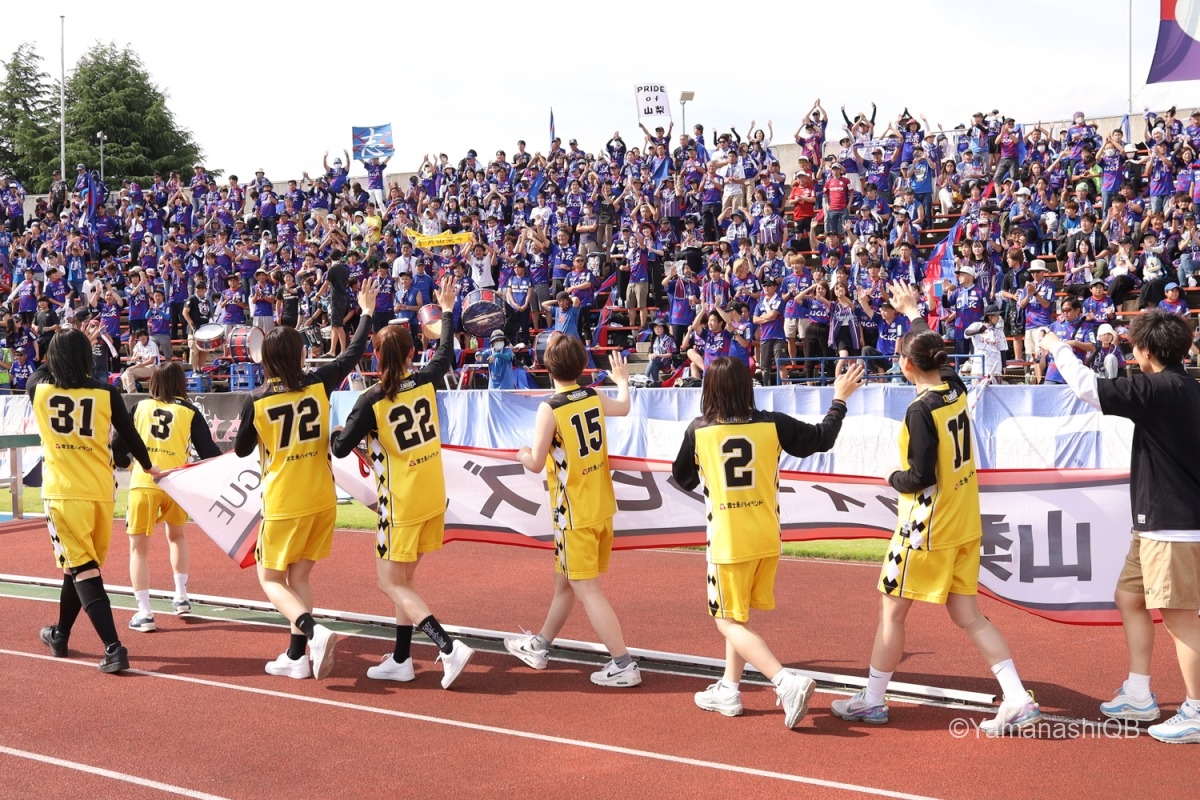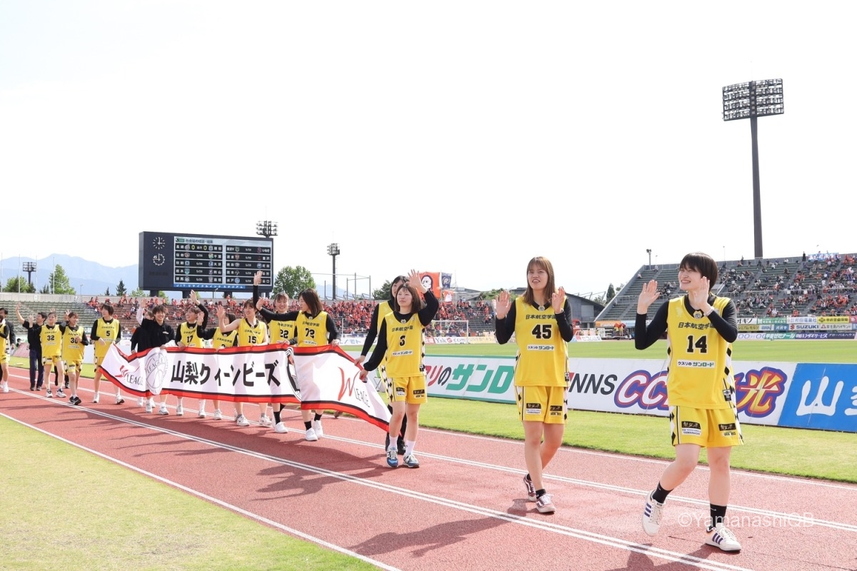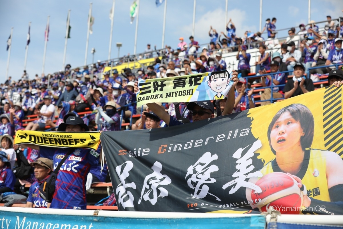 クィーンビーズが登場したのはフリースロー体験・ヴァンくんステージでのトークショー・キックインセレモニー・ハーフタイムの場内一周でした。