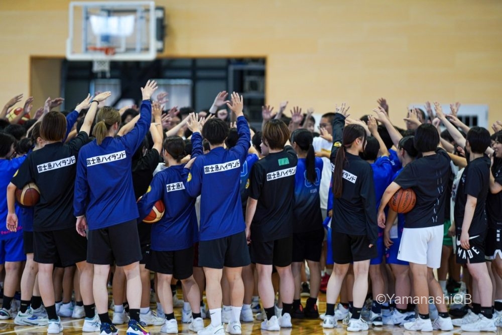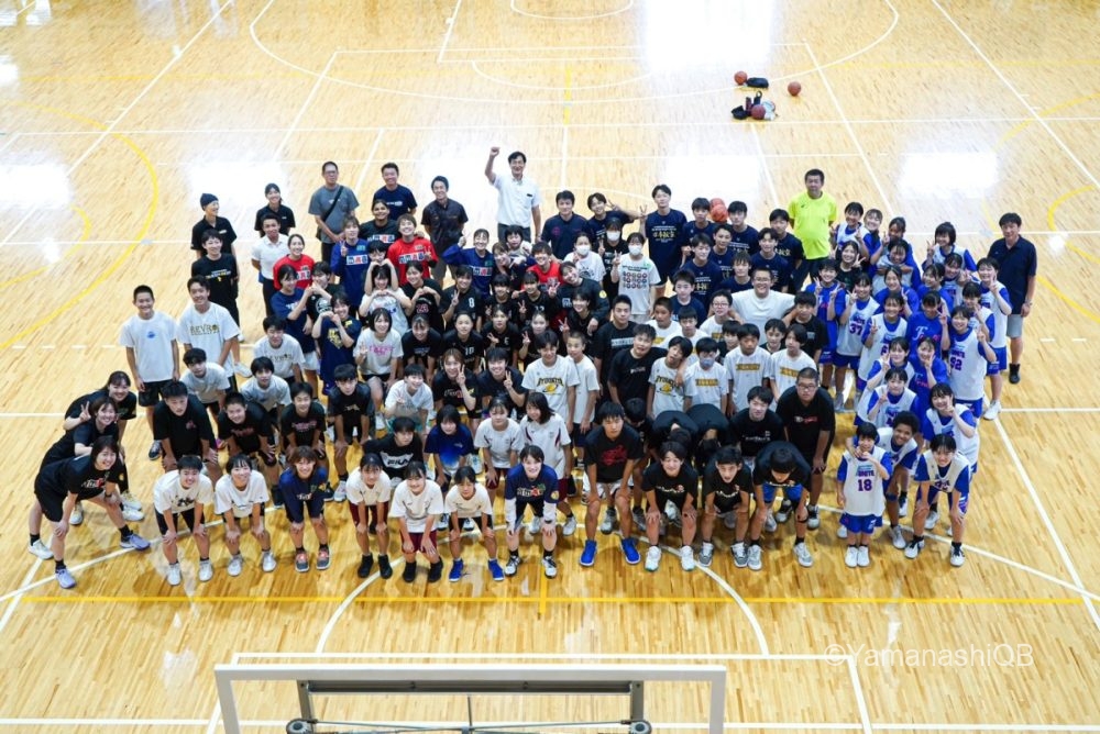 サプライズとして、全国高校総体で山梨県勢初となる日本一に輝いた日本航空学園男子バスケットボール部をはじめ、日本航空学園女子バスケットボール部、その他、山梨のバスケットボールチーム計8チーム(男子 4チーム・女子 4チーム)が参加してくれました。