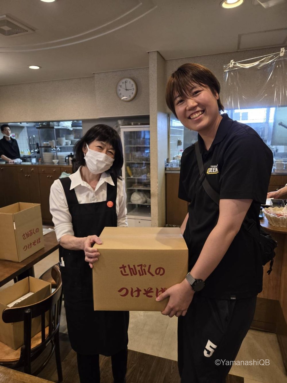中華レストラン さんぷく様よりつけそばをご提供いただき、富田 愛理選手が代表して商品を受け取りました!