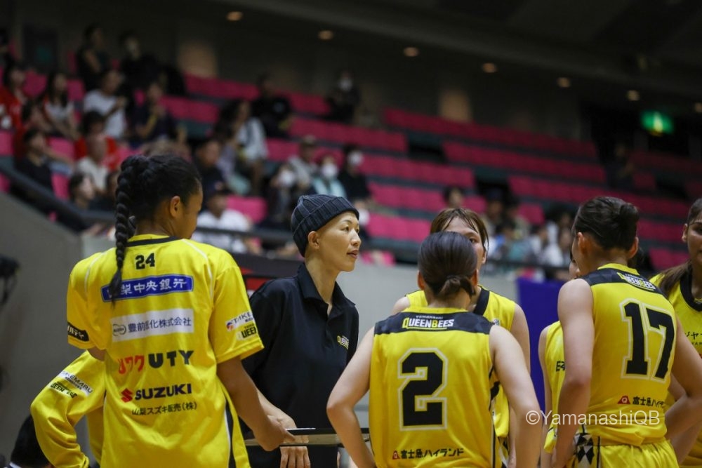 ユナイテッドカップの初戦は、7月のサマーキャンプに続くトヨタ紡織との対戦であった。あれから約2ヶ月が経ち、チーム力を高めてきたトヨタ紡織に対して、クィーンビーズはサマーキャンプで60-58と勝利した時の躍動感が見られず、動きに重さを感じる試合となった。試合を振り返った石川幸子ヘッドコーチが「このチームは得点できないとディフェンスにも悪影響が出てしまう」と語ったように、トヨタ紡織のスイッチディフェンスを攻めあぐね、低確率のシュートを繰り返した結果、リバウンドを支配され、そこからの速攻で失点が増え、徐々に点差を広げられた。