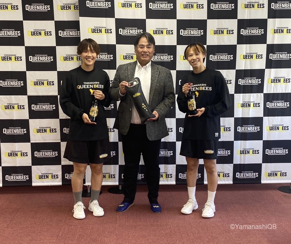 10月9日(水)、日本航空学園内 J-ship GYMにて、「株式会社サン.フーズ×山梨クィーンビーズ コラボワイン」を株式会社サン.フーズ 代表取締役 内田晃人様より贈呈いただきました。