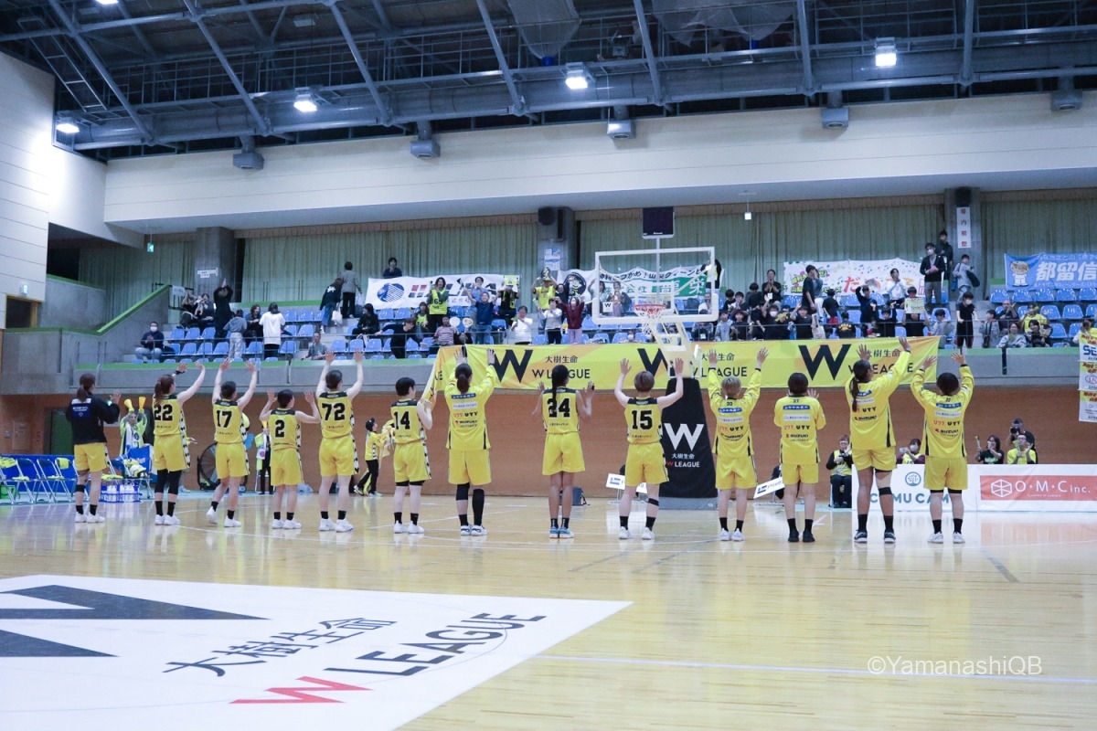 遠く離れた秋田の地で戦うクィーンビーズ。現地での応援、そして山梨からのパワーが大きな力となります。