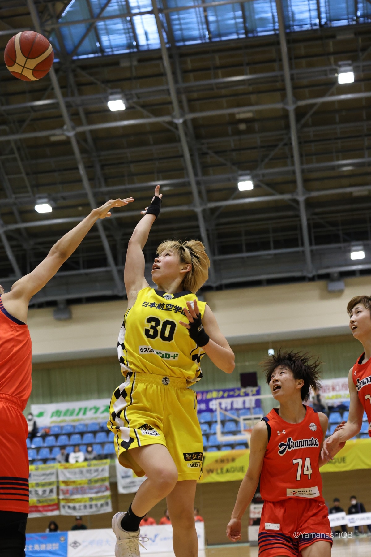 後半は、持ち味である激しいディフェンスを発揮できたと思います。特にガード陣とフォワード陣が前線からプレッシャーをかけ、中でも池田沙紀が素晴らしいディフェンスを見せてくれたことで、さらに流れを引き寄せることができました。本当にナイスディフェンスだったと思います。