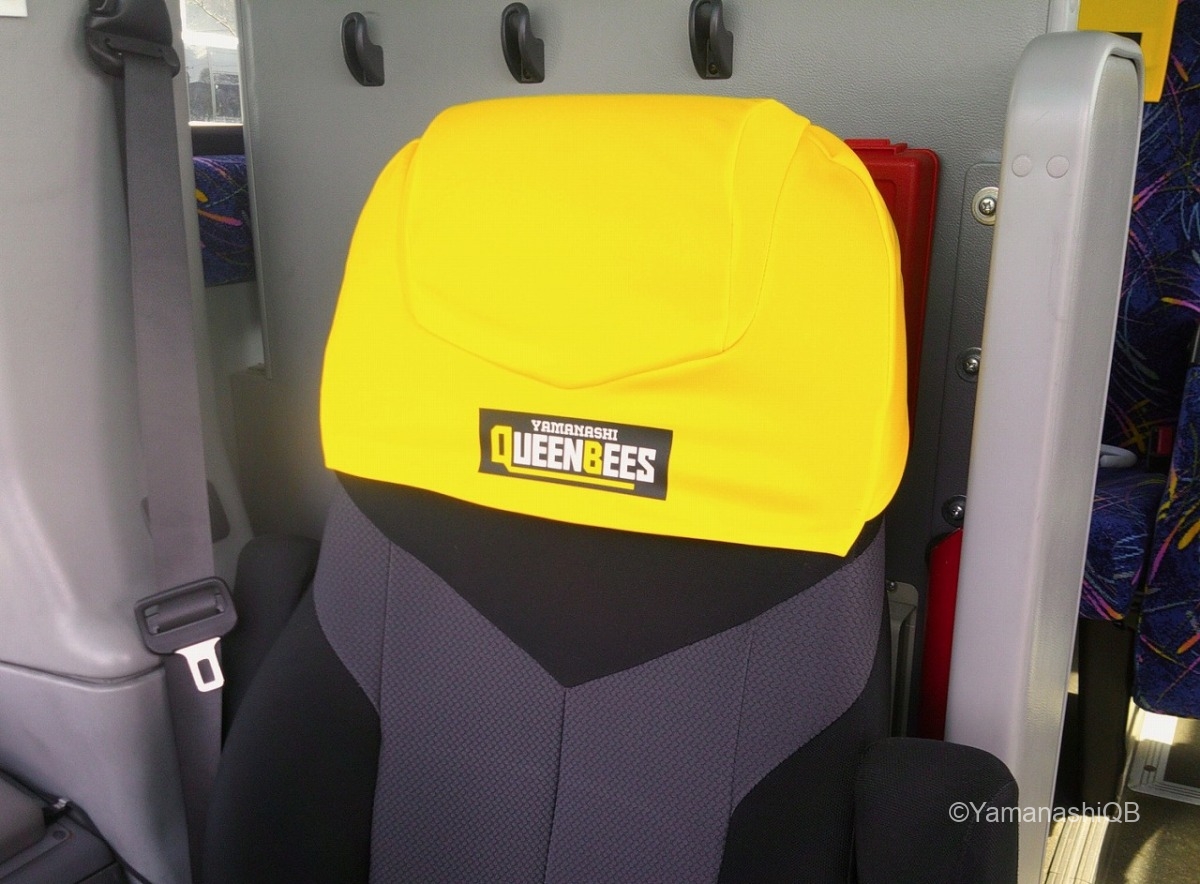 シートのヘッドカバーが、クィーンビーズのロゴ入りカバーになり、より一層特別な仕様になりました。
