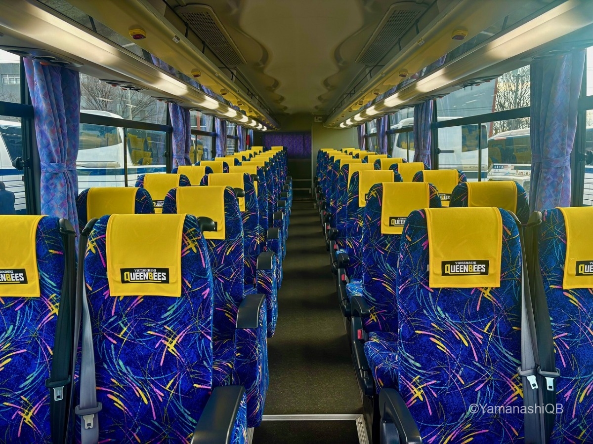 その後、山梨交通様のご好意で、ついに車内もクィーンビーズカラーに!