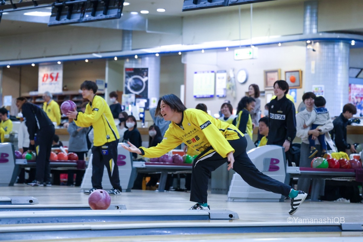 選手にとっては、まさに異種格闘技のようなボウリング。珍プレーも飛び出しながら、各組とも大いに盛り上がり、笑顔あふれる時間となった。