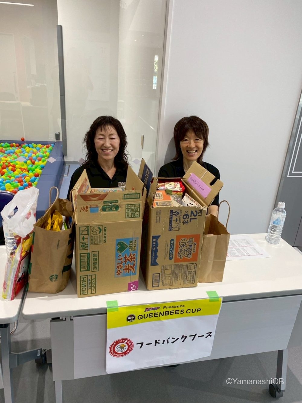 大会参加者の皆様から食品を集めるフードバンク山梨様ブースを設置しました。
