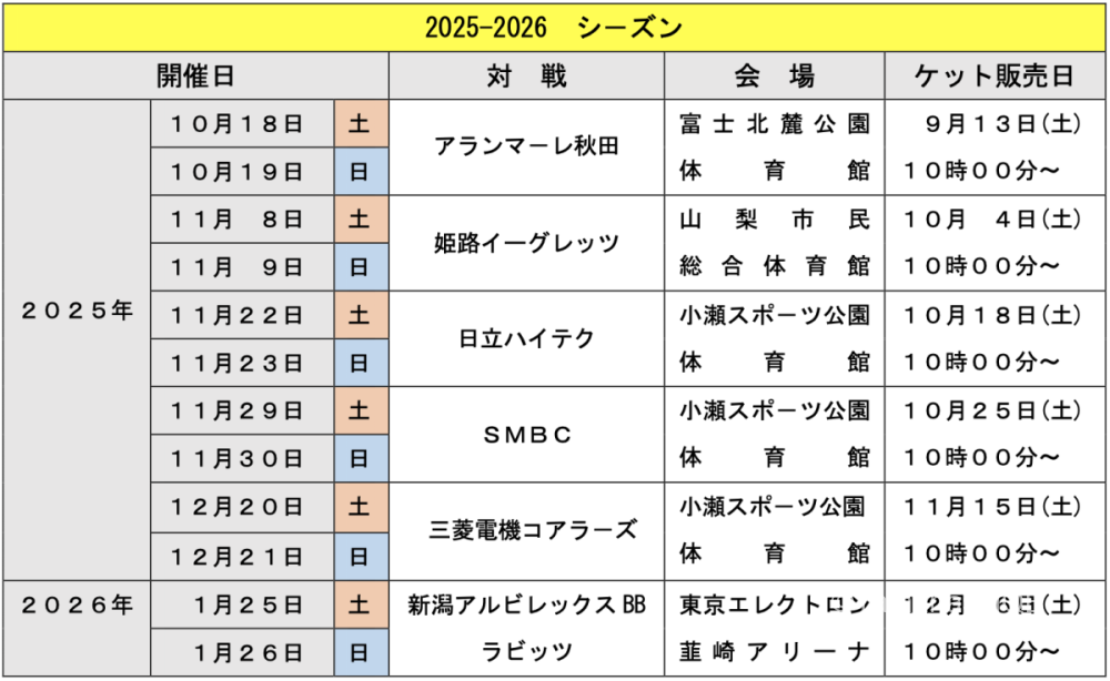 Wリ-グフューチャ-2024-25 SEASONにおける山梨クィーンビーズのチケット販売日程が決定しましたので、お知らせします。