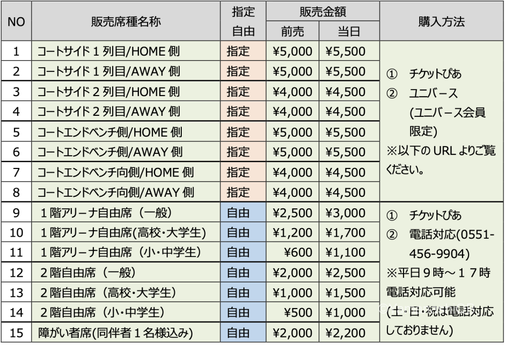 ・なおホームゲームの自由席に関しましてはクィーンビーズ事務所でも電話受付を行なっております(月曜-金曜 9:00-17:00)
