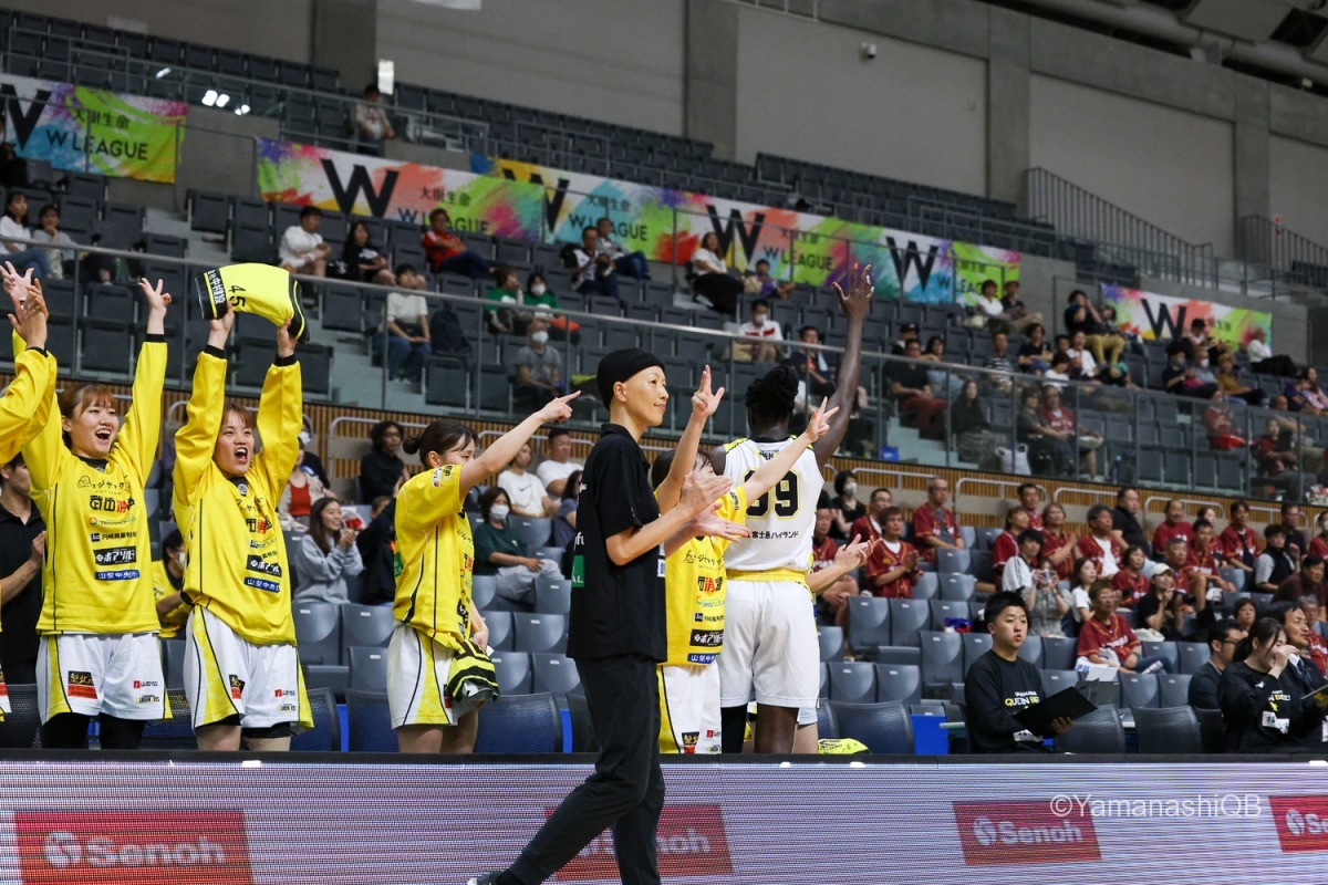 最終第4クォーター、クィーンビーズは攻め切ることができず、加えてファウルが重なりリズムを失った。この先を見据えても、第4クォーターの残り時間で何をどう表現するかは重要な課題であると思われたが、得点が伸びず点差はさらに拡大。最後は力尽き、59-89と大差で敗れた。