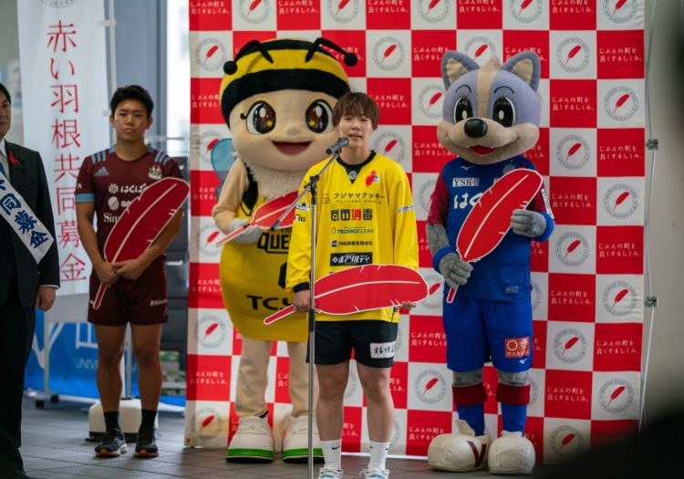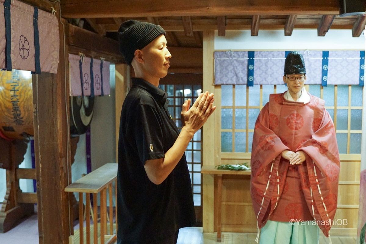 古屋宮司からは「ここに祀られている木花開耶姫命(このはなさくやひめのみこと)は富士山の女神であり、母のように温かく包み込む存在であると同時に、噴火を鎮めるほどの力強さを持つ神様です。その神様に見守られながら、日々鍛錬を重ね、試合に臨んでください。そして最後の一押しをいただき、大きな勝利を引き寄せてほしい」と力強い激励の言葉が贈られた。