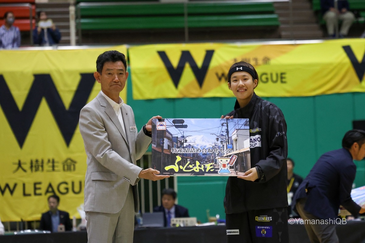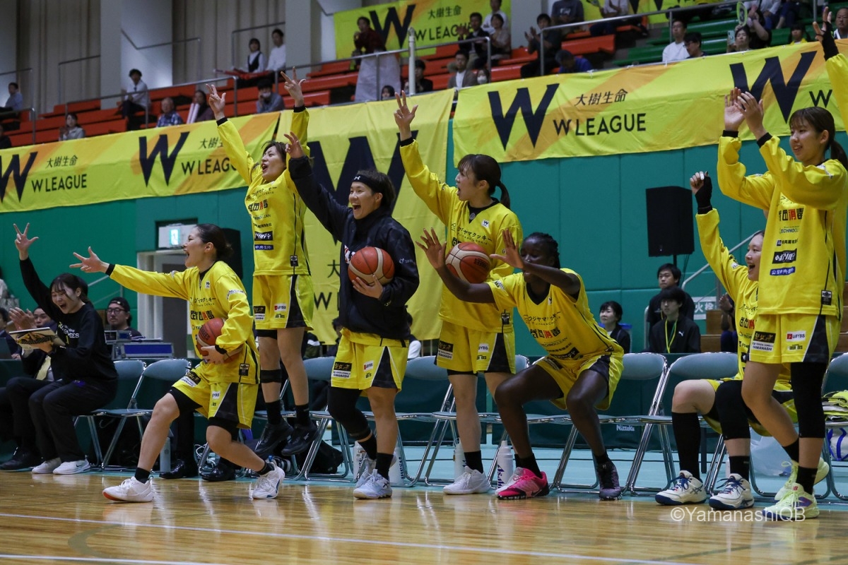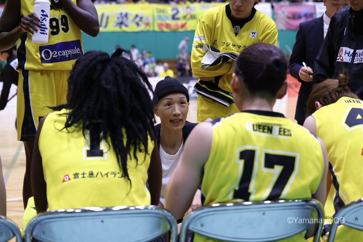第4クォーター序盤、渡邊、井上のシュート、坂田のフリースローで51–55と4点差に迫る。勢いに乗りたいクィーンビーズだったが、アランマーレ秋田は土田・高橋の連続得点で再び点差を広げる。残り4分15秒、渡邊のスリーポイントで60–62と2点差に詰め寄るも、前半でついた点差を覆すことはできず。最終スコア66–70でタイムアップ。クィーンビーズは地元で迎えた開幕戦を落とす結果となった。