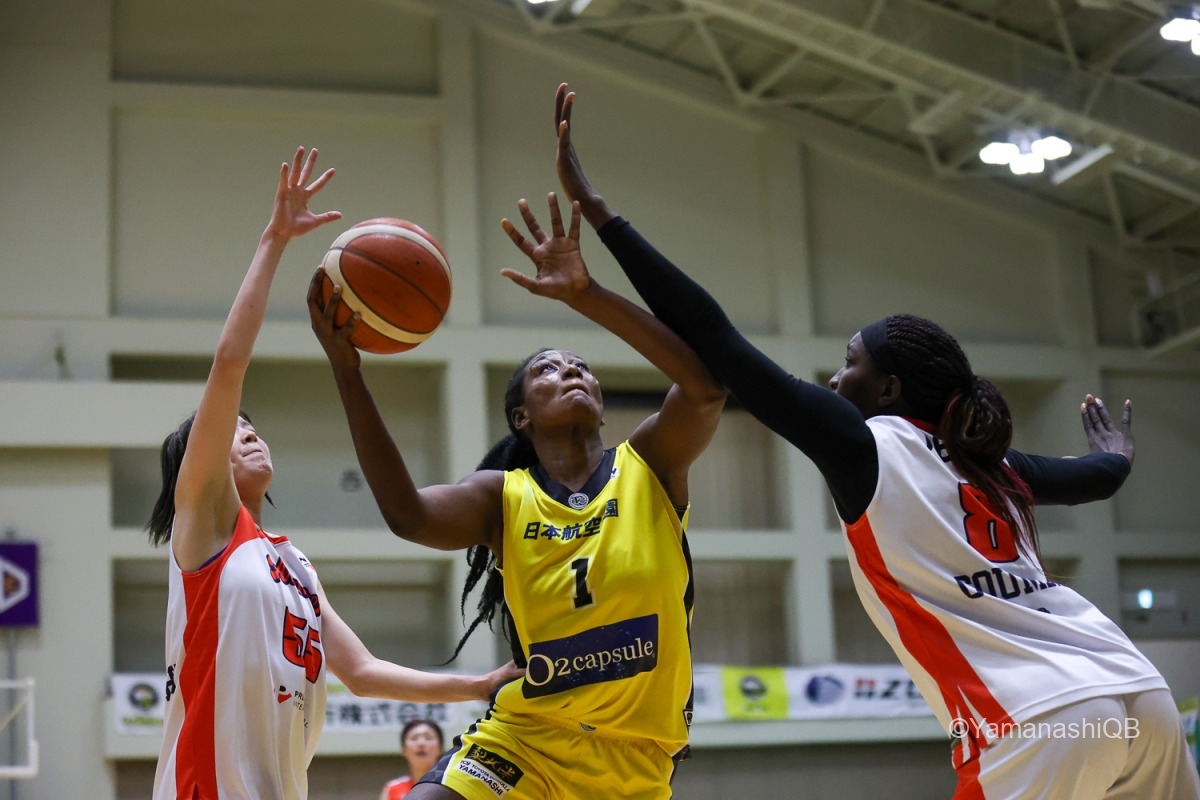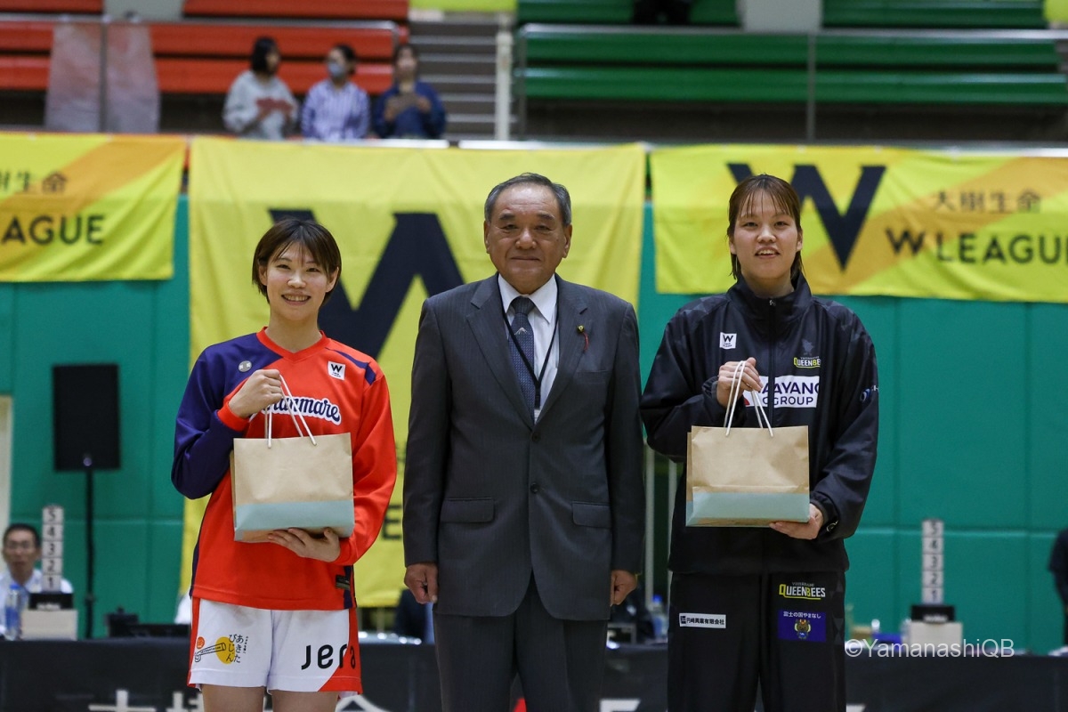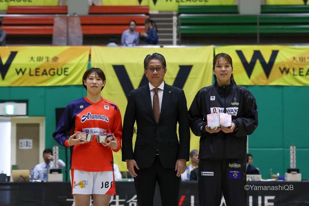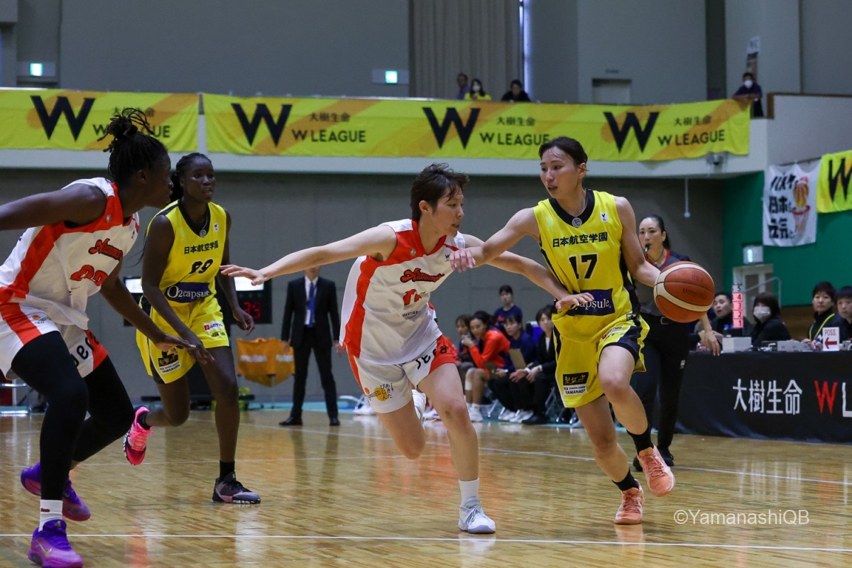 第4クォーター序盤、渡邊、井上のシュート、坂田のフリースローで51–55と4点差に迫る。勢いに乗りたいクィーンビーズだったが、アランマーレ秋田は土田・高橋の連続得点で再び点差を広げる。残り4分15秒、渡邊のスリーポイントで60–62と2点差に詰め寄るも、前半でついた点差を覆すことはできず。最終スコア66–70でタイムアップ。クィーンビーズは地元で迎えた開幕戦を落とす結果となった。