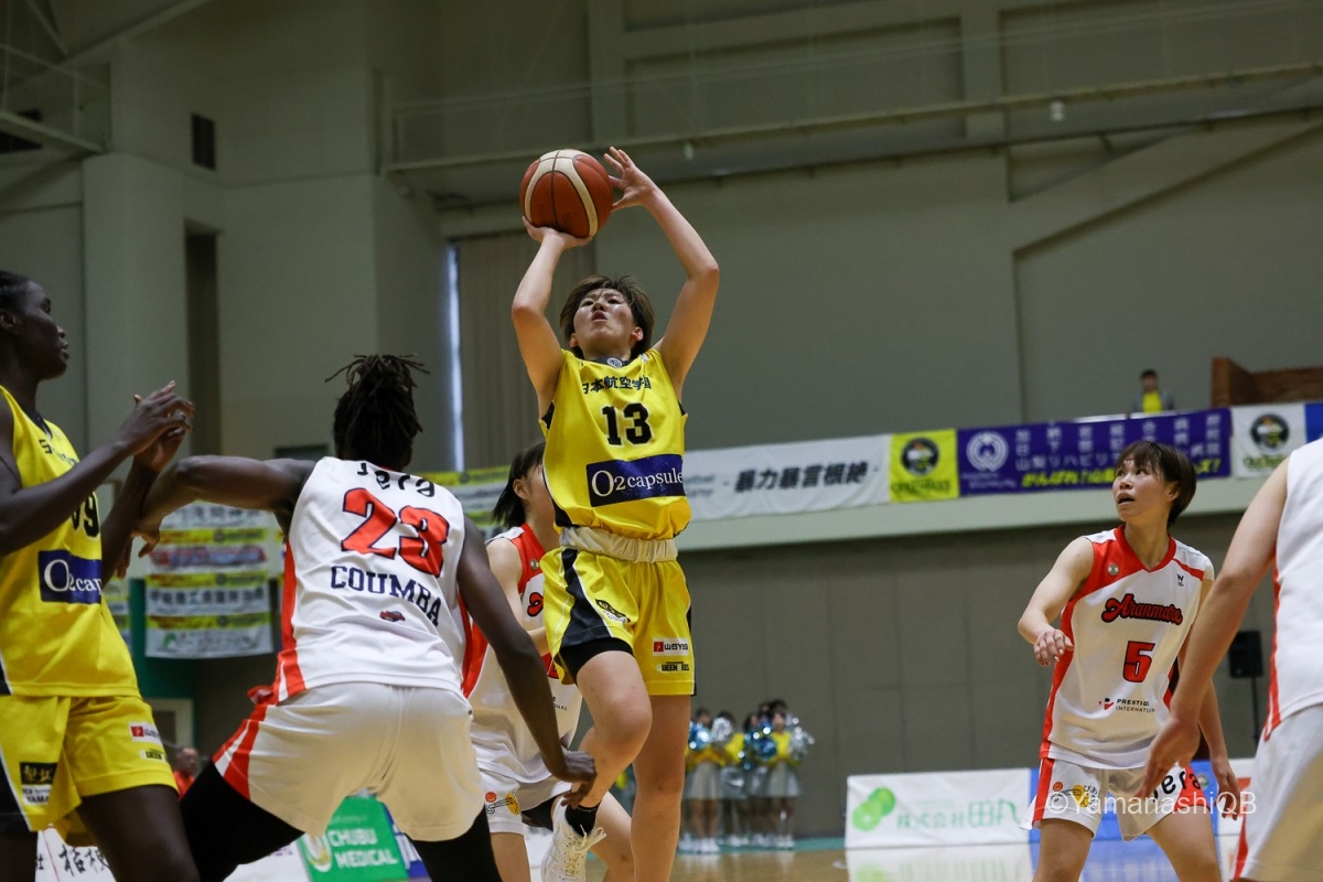 前半は「ディフェンスから」という共通認識を持ちながらも、開始早々から攻守にギアを上げてきたアランマーレ秋田のフィニッシュを止めきれず、また自分たちのシュートが落ちたことで波に乗り切れなかった。後半はディフェンスの強度を上げ、個ではなくチームとして得点を取りに行く姿勢が見えただけに、試合の入りが悔やまれるゲーム1となってしまった。