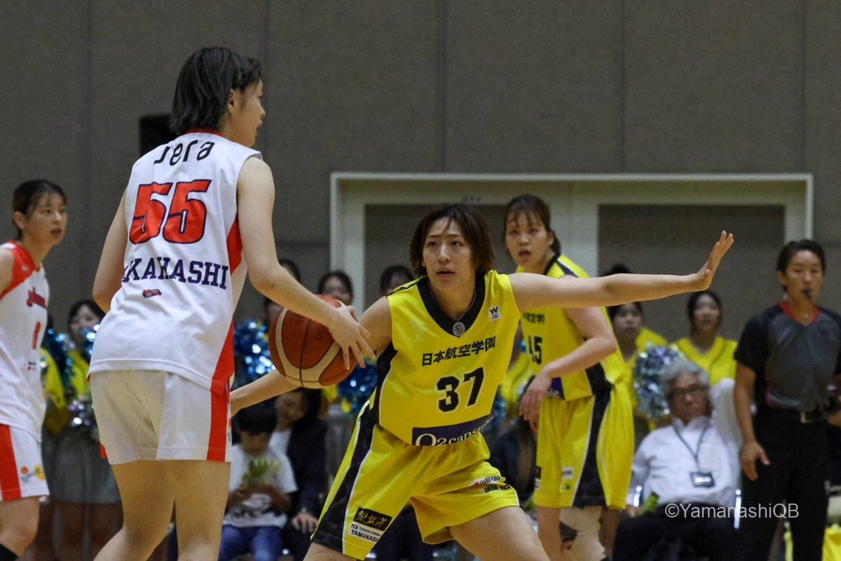 後半はチーム全員でディフェンスを意識し、声を掛け合いながらそこからスムーズにオフェンスにつなげられたのは良かった点です。すべてが悪かったわけではないので、この敗戦をしっかり活かして、ずるずるいかずに明日は勝ちにつなげたいと思います。