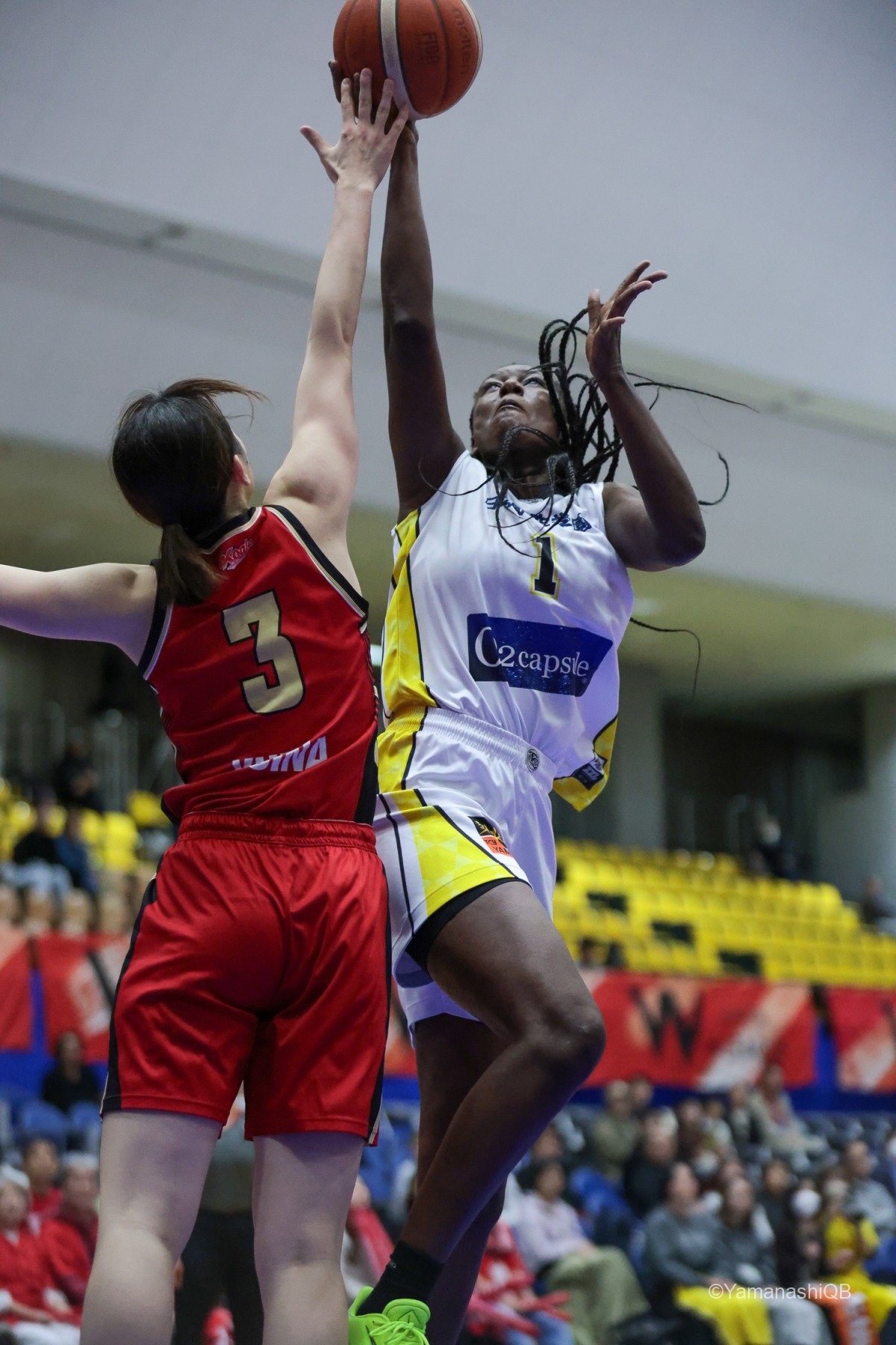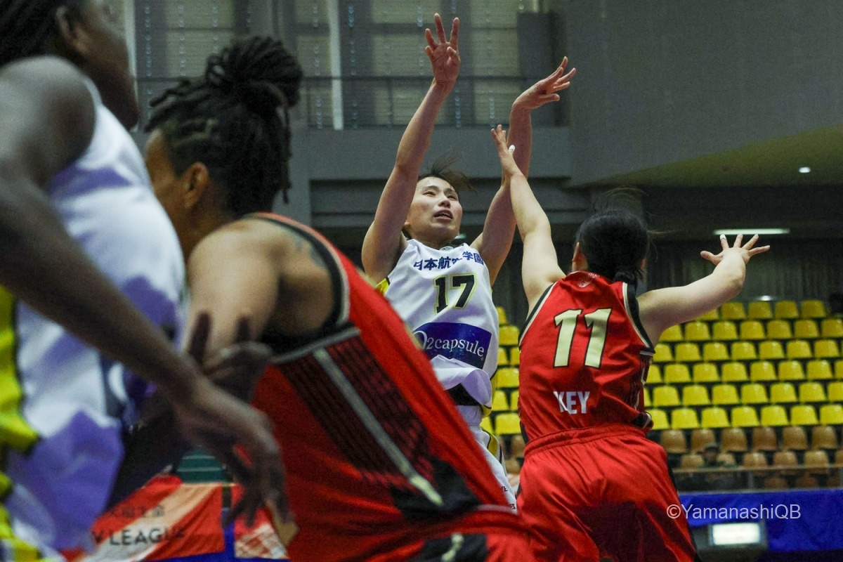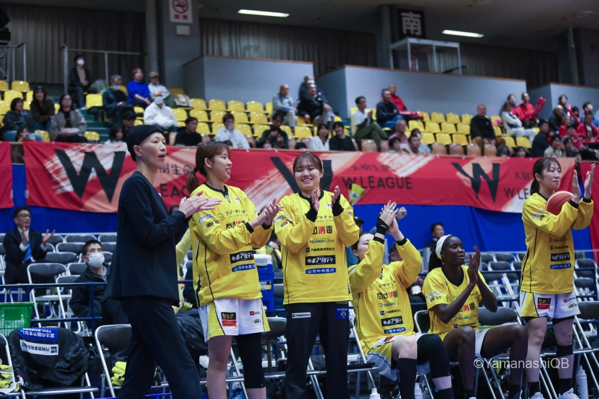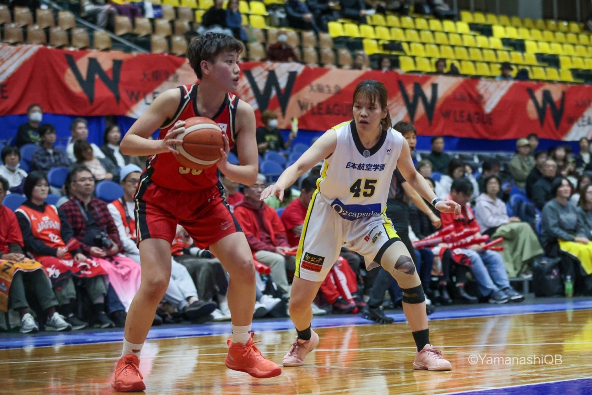 チーム全員が「優勝を目指して一つでも多く勝つ」という気持ちを共有して試合に臨みました。昨日に続いて2連勝しようと決めていたので、全員が最後まで頑張ってプレーできたことが嬉しいです。 試合中はどんな状況でも諦めず、5人でコートの中で声を掛け合いながら「次の1本」に集中できたことが良かったと思います。山梨のチームは本当に強く、最後まで粘り強く戦えるチームです。全員で決めたことをやろうという気持ちがすごく表れていました。 今日は池田のシュートがとても良くて、彼女の得点がチームを勢いづけてくれました。私自身も得点に絡む場面やディフェンスでチームに貢献できたことを嬉しく思います。 チーム全体でプレーできた試合でした。来週のホームゲームでも、今日のように全員で力を合わせて戦いたいです。応援よろしくお願いします。会場でお待ちしています。