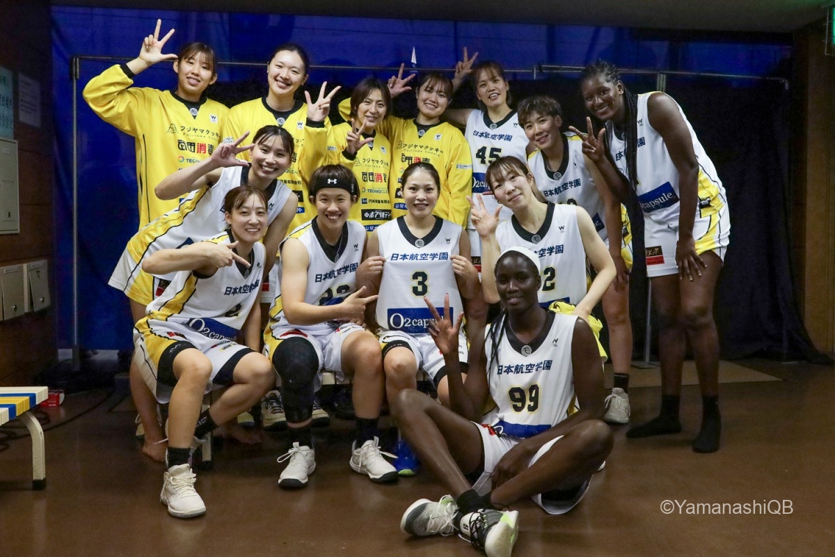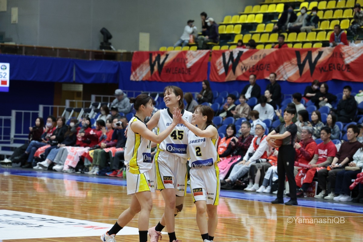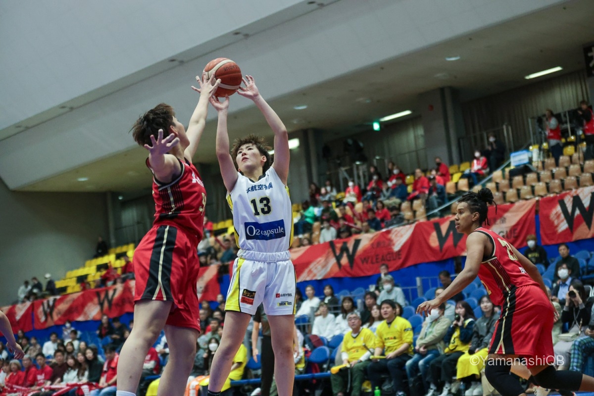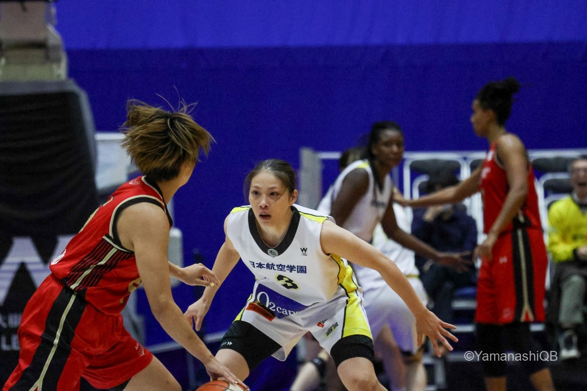チーム全員が「優勝を目指して一つでも多く勝つ」という気持ちを共有して試合に臨みました。昨日に続いて2連勝しようと決めていたので、全員が最後まで頑張ってプレーできたことが嬉しいです。 試合中はどんな状況でも諦めず、5人でコートの中で声を掛け合いながら「次の1本」に集中できたことが良かったと思います。山梨のチームは本当に強く、最後まで粘り強く戦えるチームです。全員で決めたことをやろうという気持ちがすごく表れていました。 今日は池田のシュートがとても良くて、彼女の得点がチームを勢いづけてくれました。私自身も得点に絡む場面やディフェンスでチームに貢献できたことを嬉しく思います。 チーム全体でプレーできた試合でした。来週のホームゲームでも、今日のように全員で力を合わせて戦いたいです。応援よろしくお願いします。会場でお待ちしています。