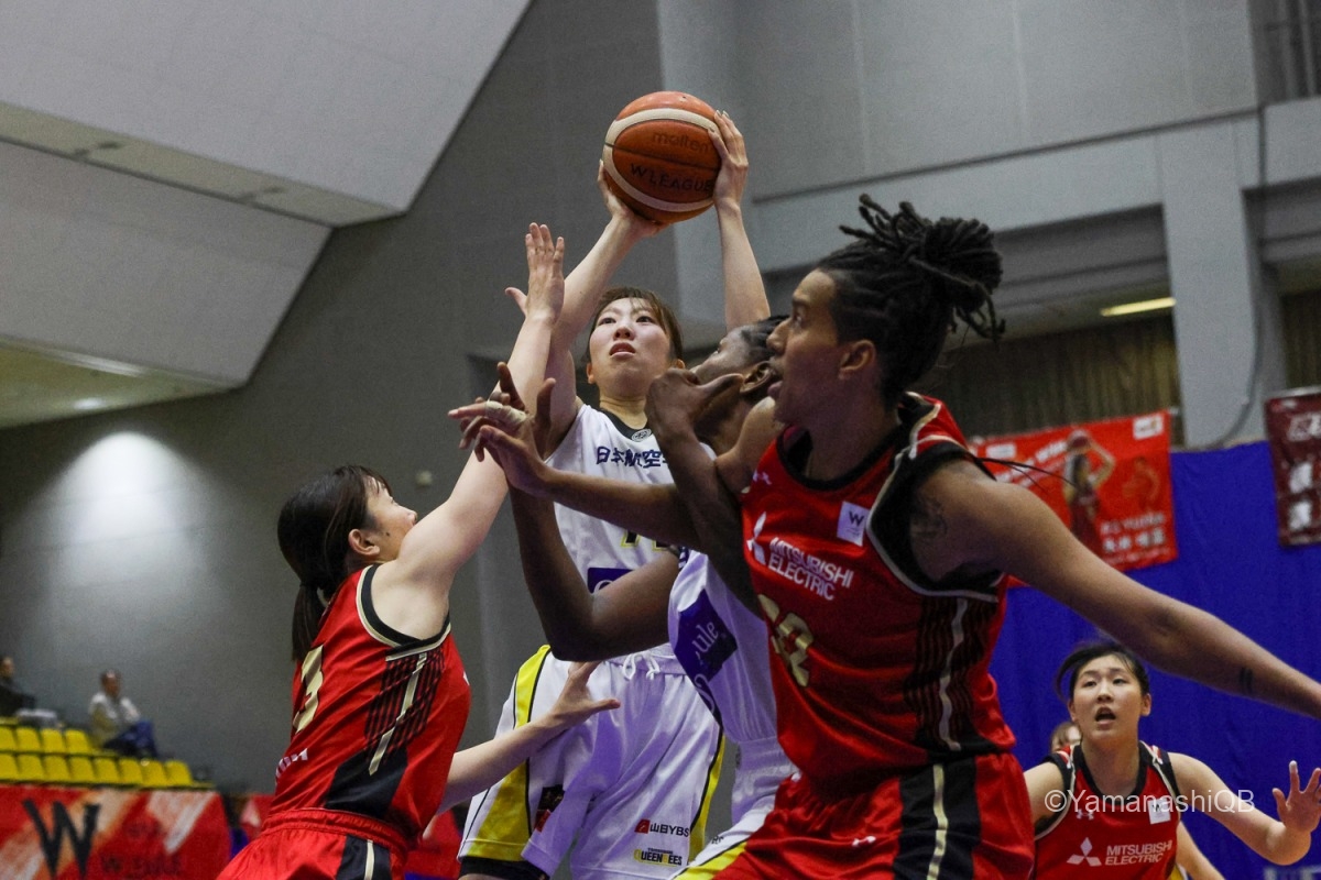 中盤、一時は三菱電機に追い上げを許すが、終盤「渡邊のファウルがかさんで早い段階で交代が必要になった場面で、三好がしっかり役割を果たしてくれた」と石川幸子ヘッドコーチが試合後にその働きを称えたように、三好青花がジャンパーを沈め、リードを広げて18-14で第1クォーターを終えた。