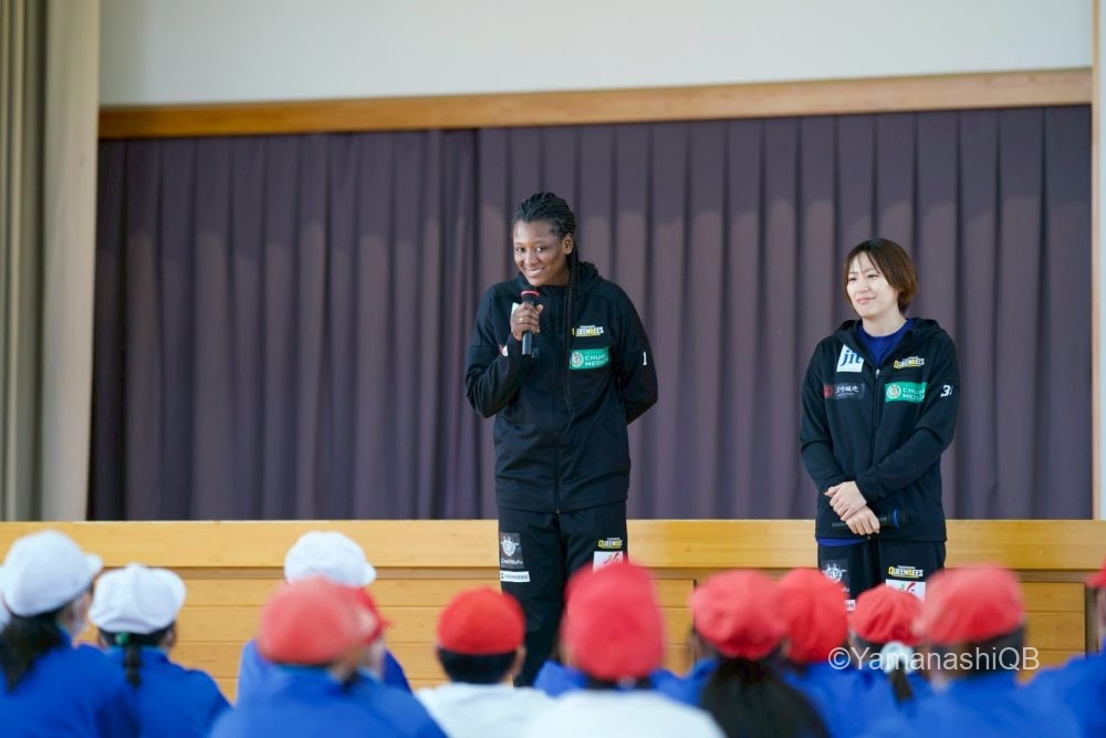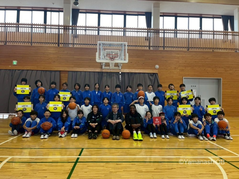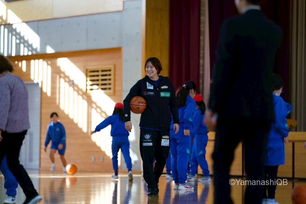山梨クィーンビーズは、株式会社はくばく様のご主催・ご協力のもと、2025年11月18日(火)に中央市立田富北小学校にて「夢授業(出前授業)」を実施しました。中央市立田富北小学校の5年生40名を対象に、夢を持つことの大切さと、バスケットボールの楽しさを伝えました。