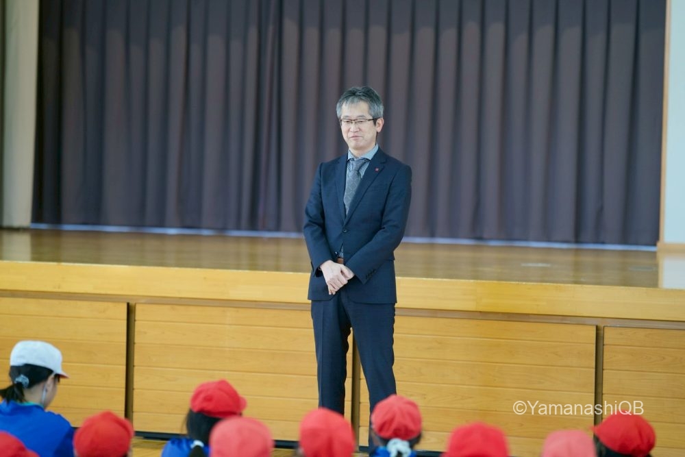 続いて、出前授業の対象校である中央市立田富北小学校 校長 飯塚 正規様よりご挨拶をいただき、本事業の実施への期待が語られました。