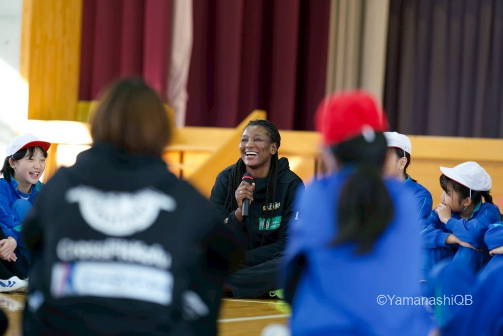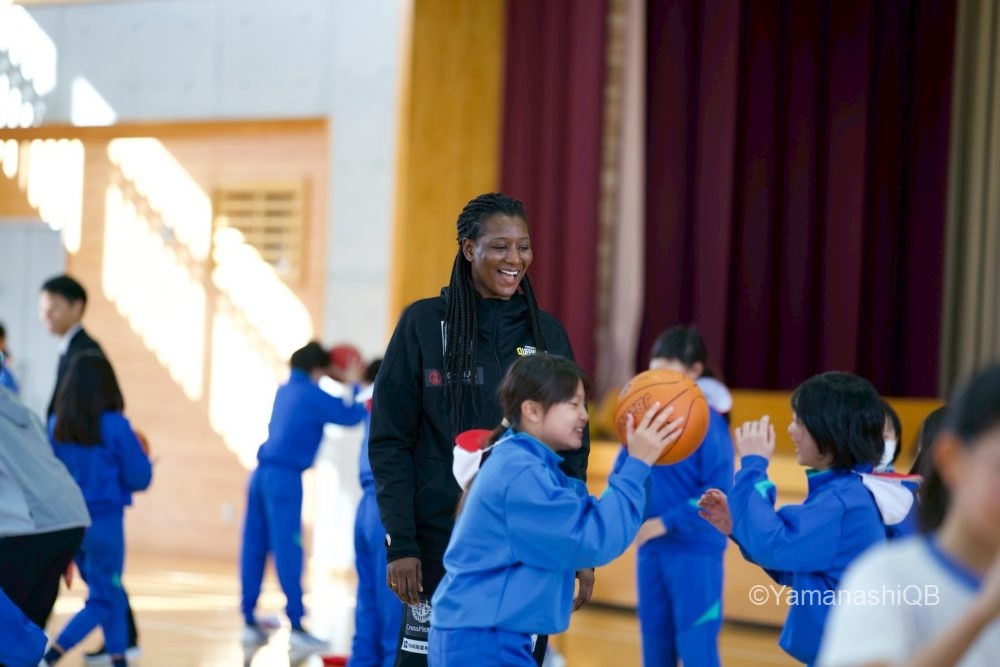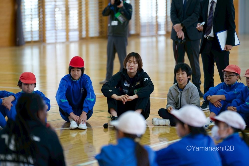 山梨クィーンビーズは、株式会社はくばく様のご主催・ご協力のもと、2025年11月18日(火)に中央市立田富北小学校にて「夢授業(出前授業)」を実施しました。中央市立田富北小学校の5年生40名を対象に、夢を持つことの大切さと、バスケットボールの楽しさを伝えました。