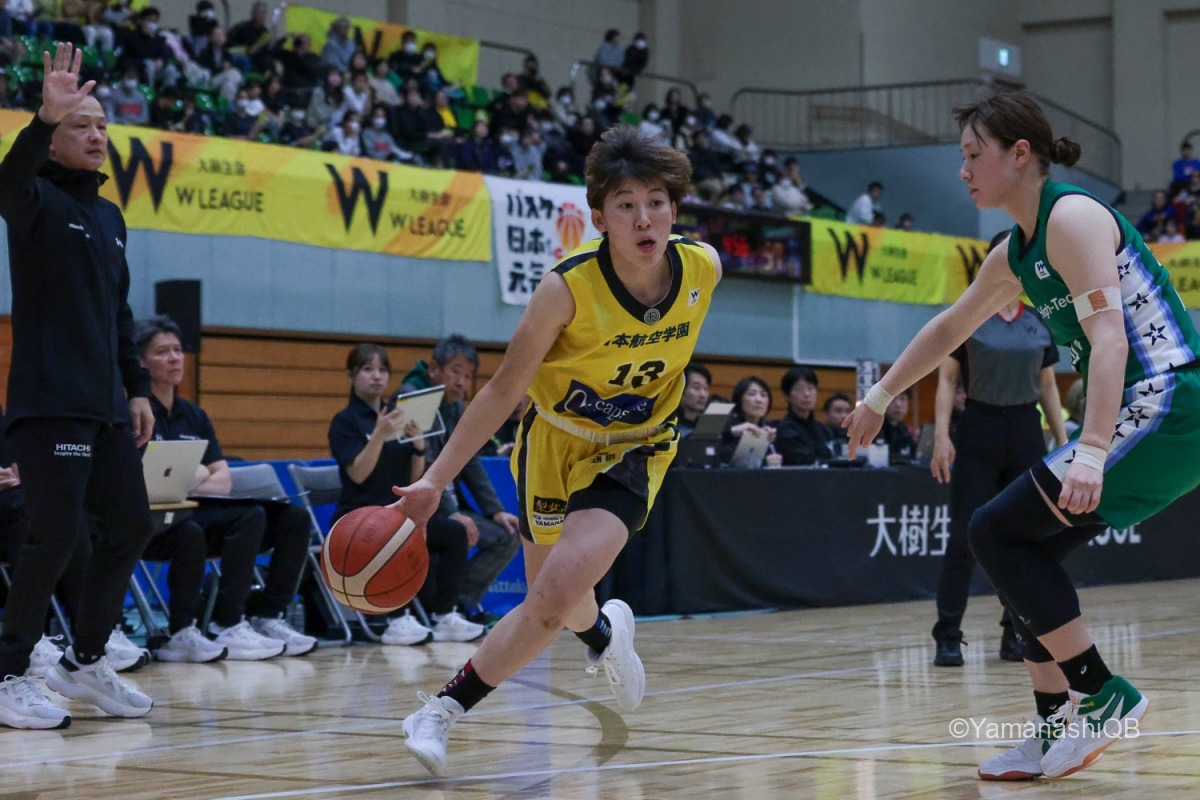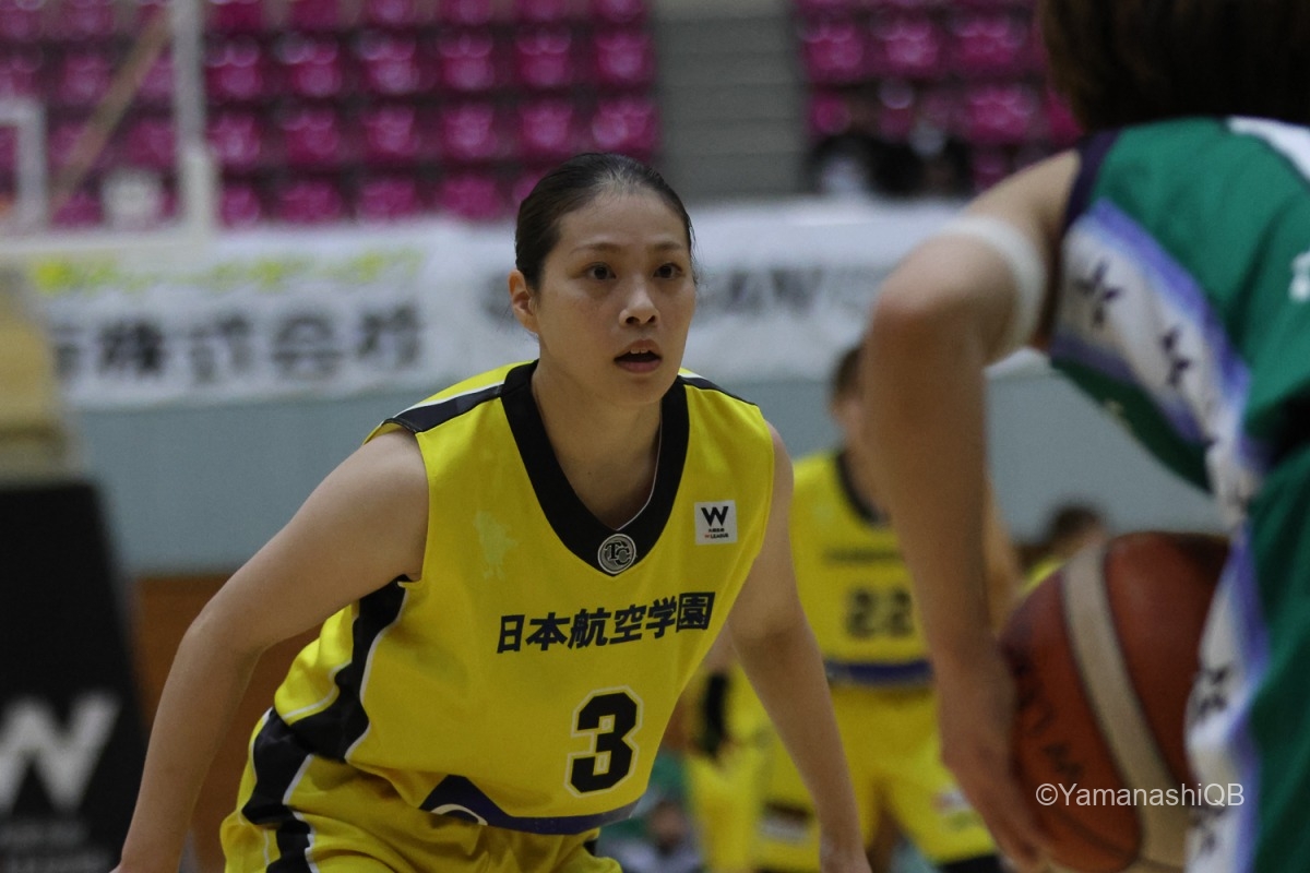 第2クォーター、坂田侑紀奈、出原菜月が積極的にシュートを放つも決め切れず、流れを引き寄せられない時間帯が続く。