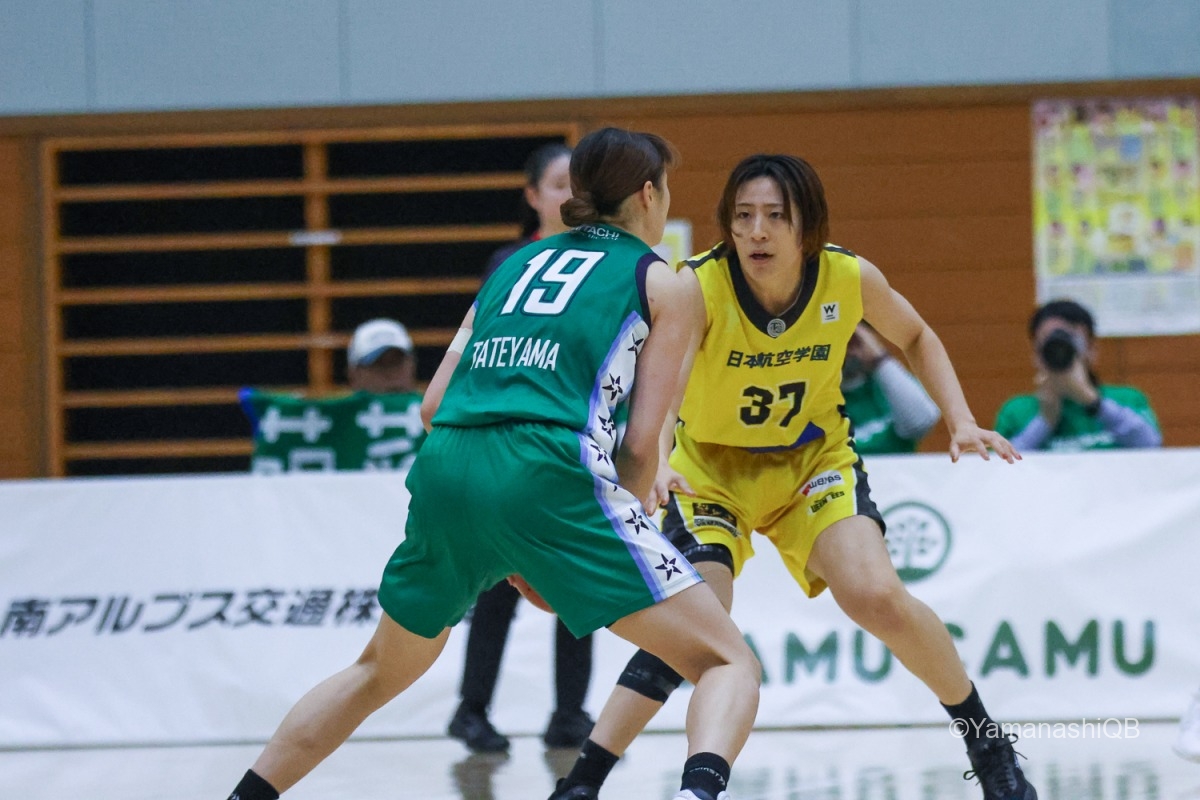 第2クォーター、坂田侑紀奈、出原菜月が積極的にシュートを放つも決め切れず、流れを引き寄せられない時間帯が続く。