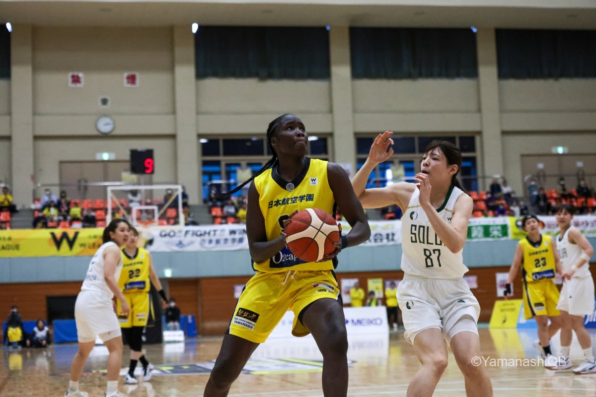 以降はダラーメ マレム ドイの得点、坂田侑紀奈のスリーで48-31と再び突き放し、前半は50-38で終了。
