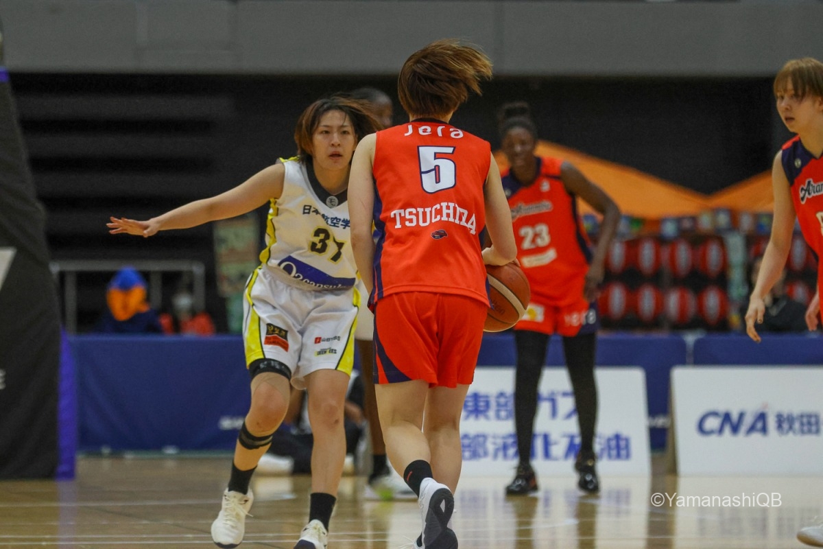 守備では坂田侑紀奈が積極的に仕掛けてマイボールにし、続いて高田栞里がダフェ・ハディのシュートがこぼれたところを押し込んで16−8とリードを広げた。アランマーレのタイムアウトを挟んでも集中は途切れず、18−10で最初の10分間を終えた。