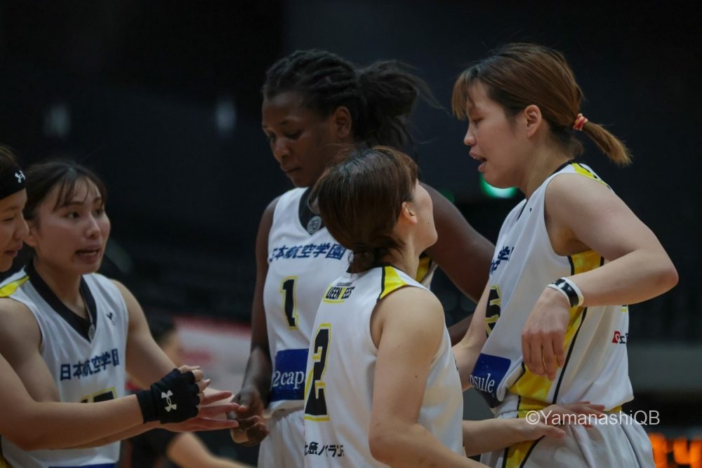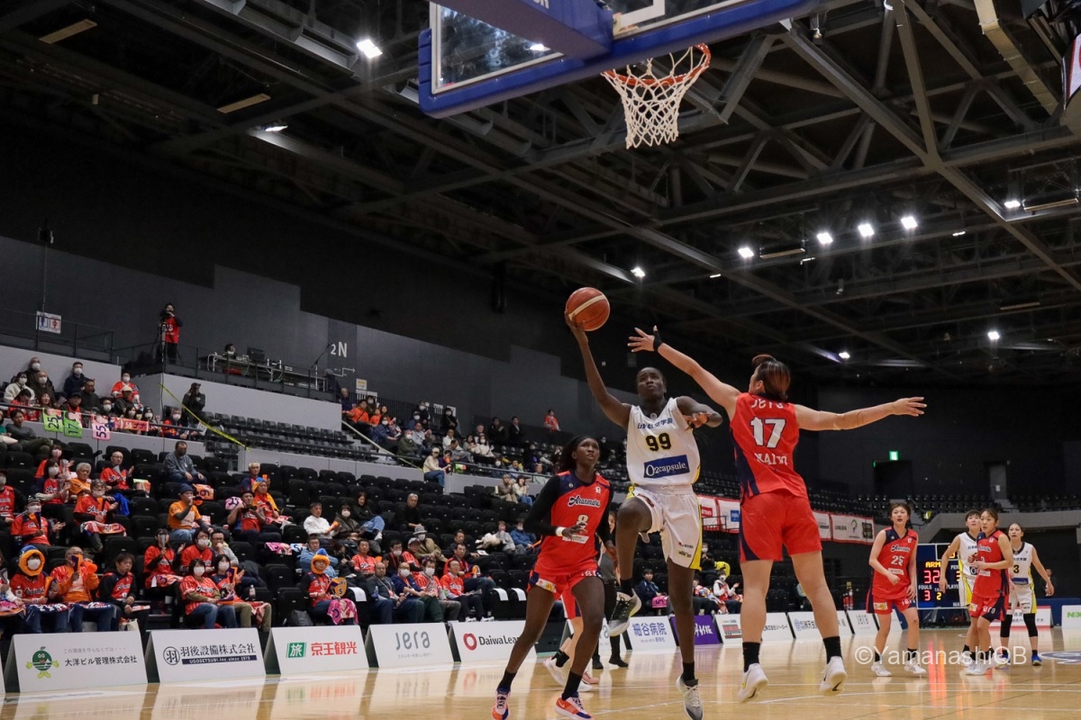 高さに抑え込まれても攻め続ける姿勢がオフェンスの一つの軸となり、クィーンビーズは得点源が偏らず、内外バランスの良い攻撃を展開した。昨日は6名が得点したのに対し、今日は9名がスコアした。